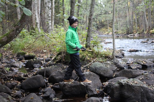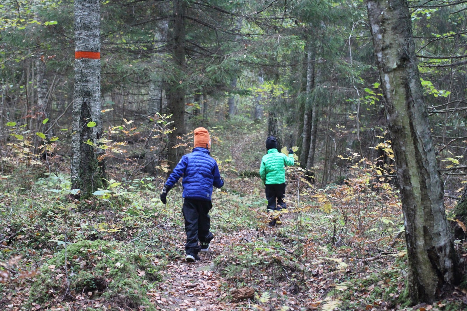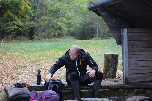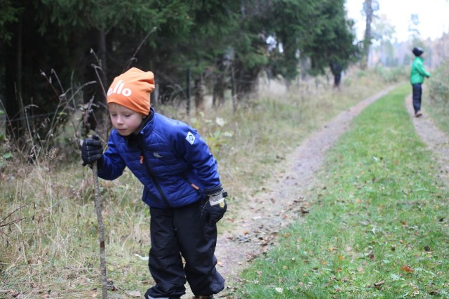Trots det lite halvtråkiga vädret så kände vi för att ge oss ut en sväng idag, hela familjen. Efter en snabb sökning hittade vi Nyckelåsleden, strax utanför Mullsjö, som skulle vara 5 km lång (vi fick det dock till 6 km), med en grillplats och vindskydd ungefär halvvägs – perfekt.