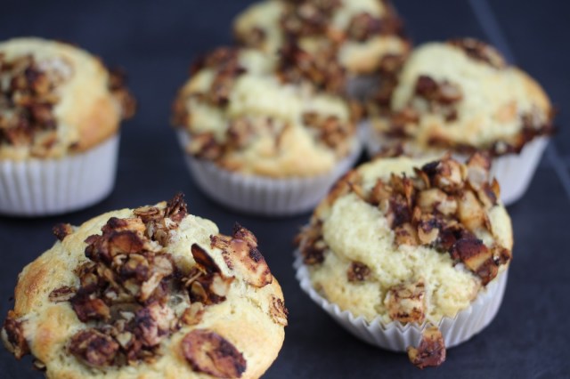 Basreceptet på de här muffinsen är helt underbart, det är faktiskt ett recept från när min pappa gjorde lumpen som kock (?) i flottan. Äppelsmulet är mitt eget tillägg och det går ju egentligen att variera muffinsen i all evighet, med topping, vaniljkräm, blåbär eller lite vad som.