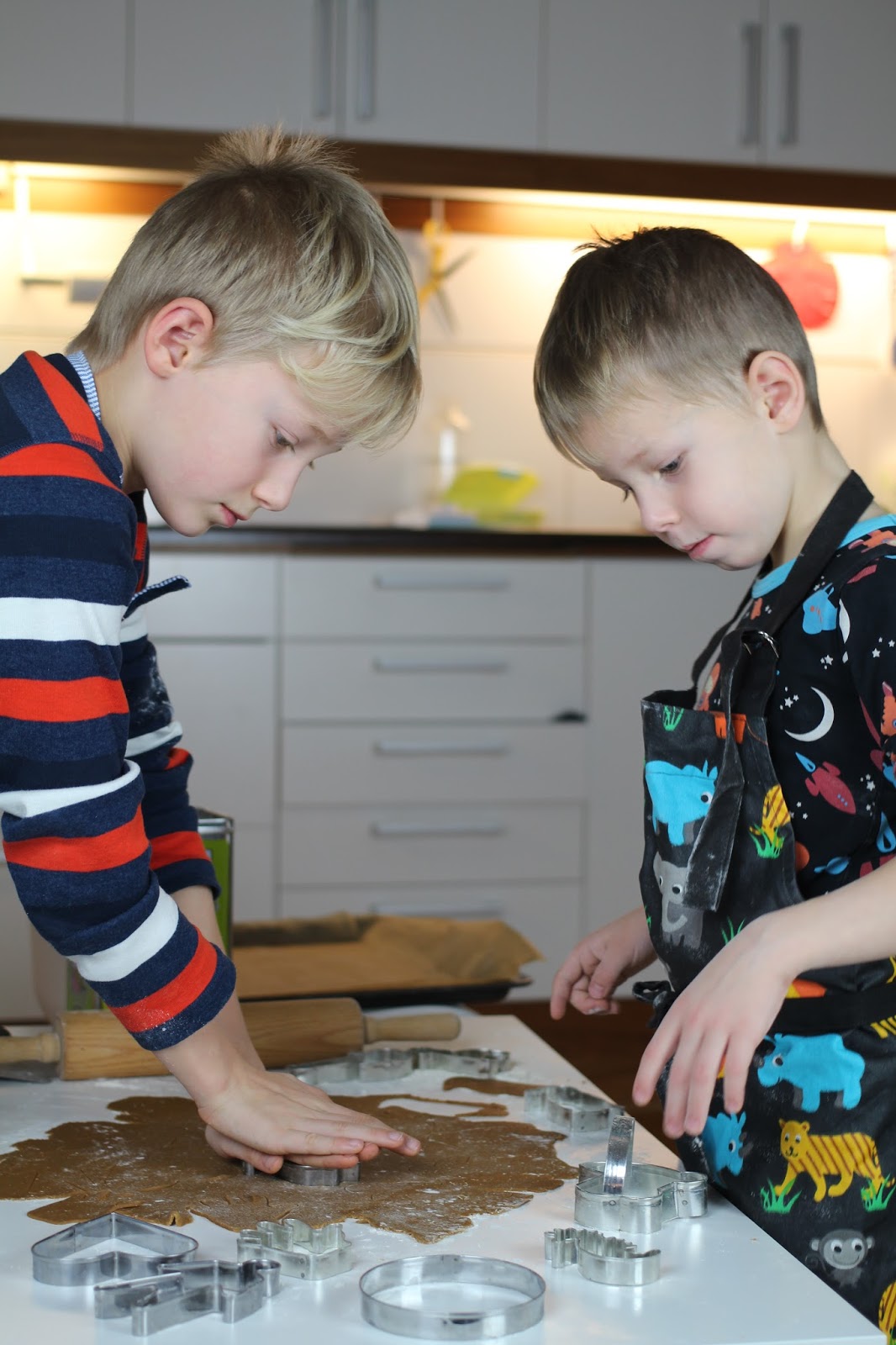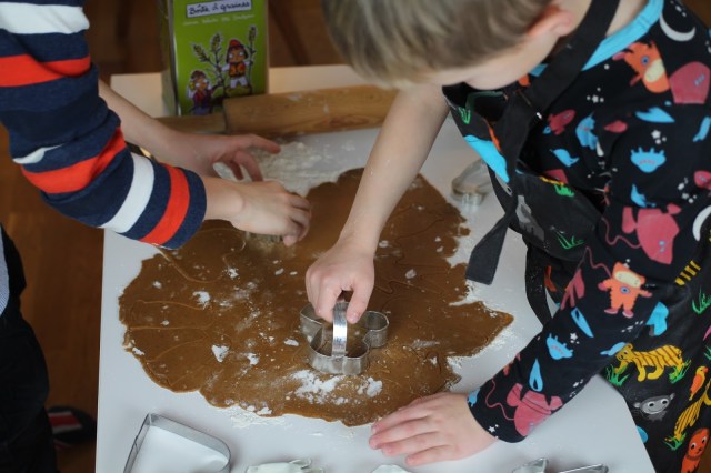 | Här hemma bakar vi elgitarrer, barnvagnar, händer, pingviner, sjöhästar och giraffer till jul. |