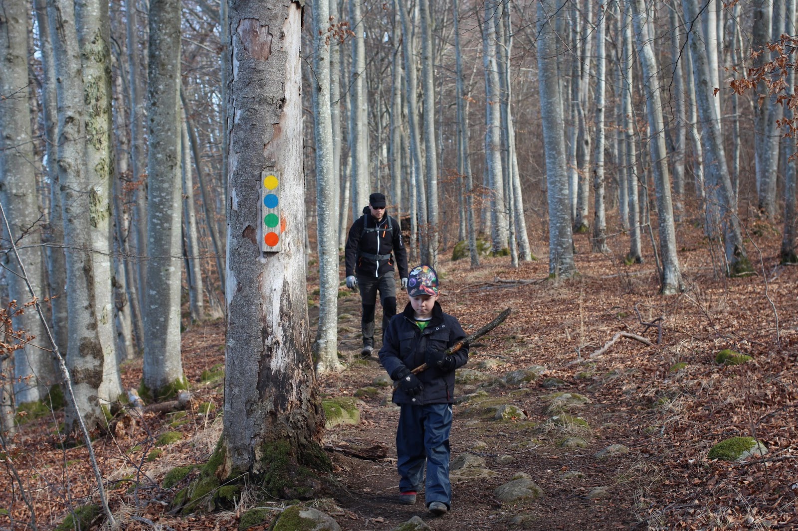 | En bit av vägen är det bokskog, väldigt vackert! Sen varför Lukas helst ska bära med sig halva skogen vet jag inte… |