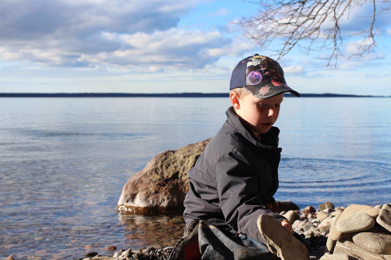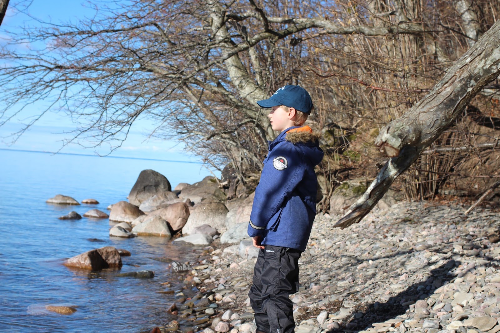 Idag kände vi oss tillräcklig friska (även om Oliver är hostig och jag är riktigt förkyld) för att ge oss ut på en liten utflykt i det helt fantastiska vädret. Vi bestämde oss för att gå en liten del av Västanåleden, ca 5 km fram och tillbaka, i lite sakta mak, med stopp i det fina vindskyddet vid vändpunkten. Vi ställde bilen i Röttle och gick utmed Vättern bort, med fågelkvitter och vågskvalp som sällskap – löjligt idylliskt, jag vet…
