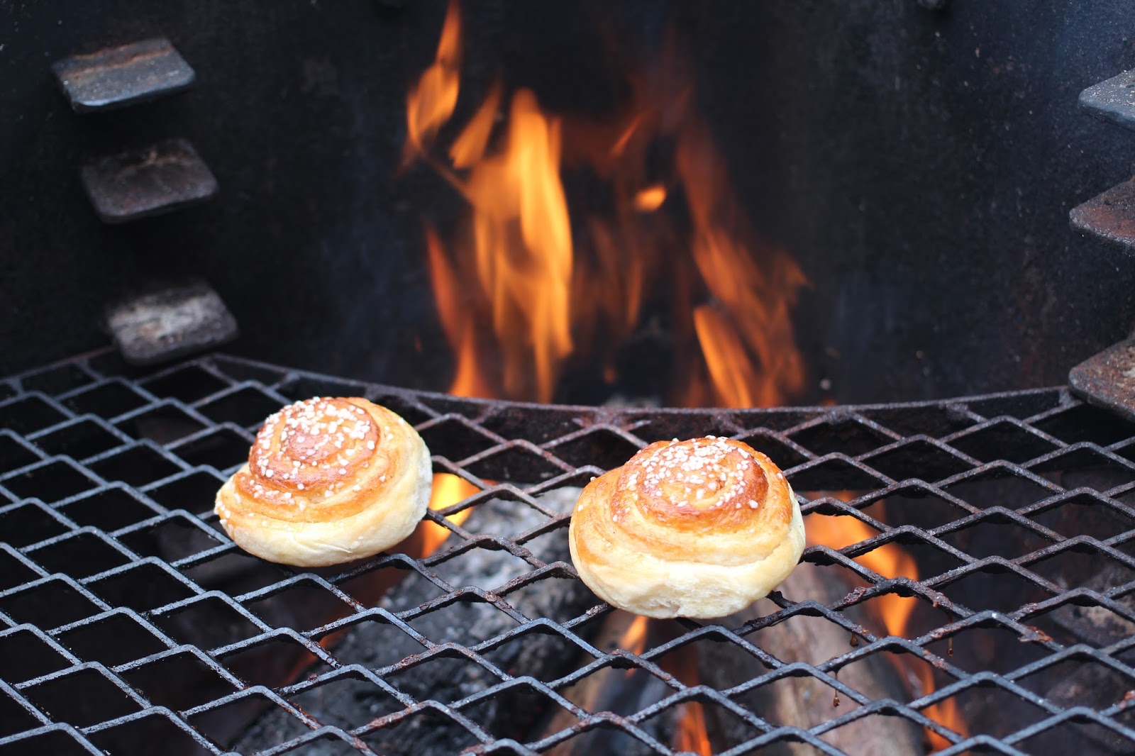 | Förutom korv och bananer med choklad så värmdes även pappas hembakade bullar på lite över elden. Det blev INTE fel vill jag lova! |