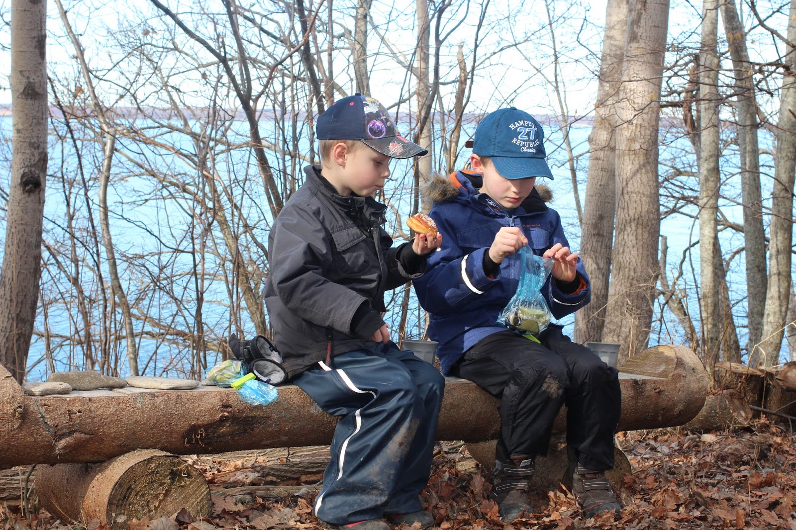 | När vi satt i vindskyddet och grillade så var barnen nere vid stranden och kastade macka. |