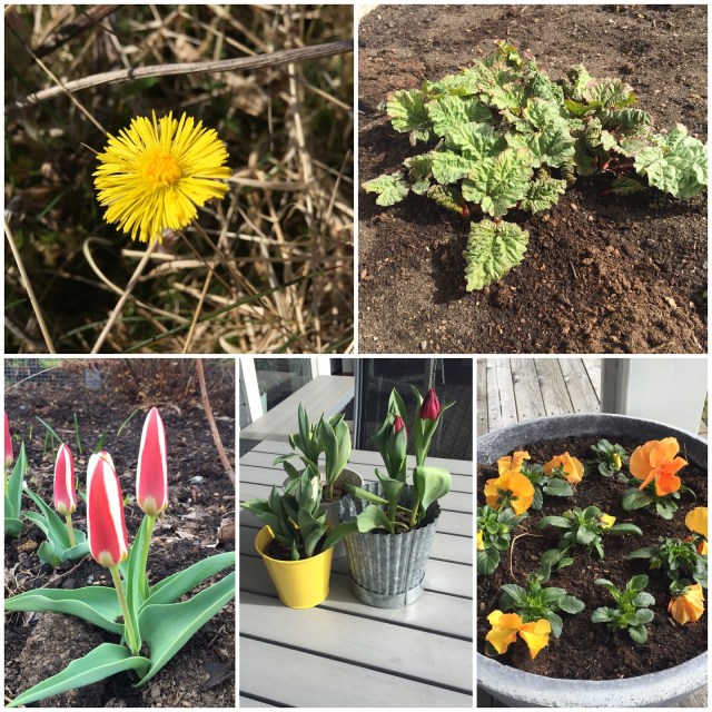 | I trädgården har jag dessutom börjat få rabarber, och mina tulpaner (minitulpaner??!) tittar fram. |