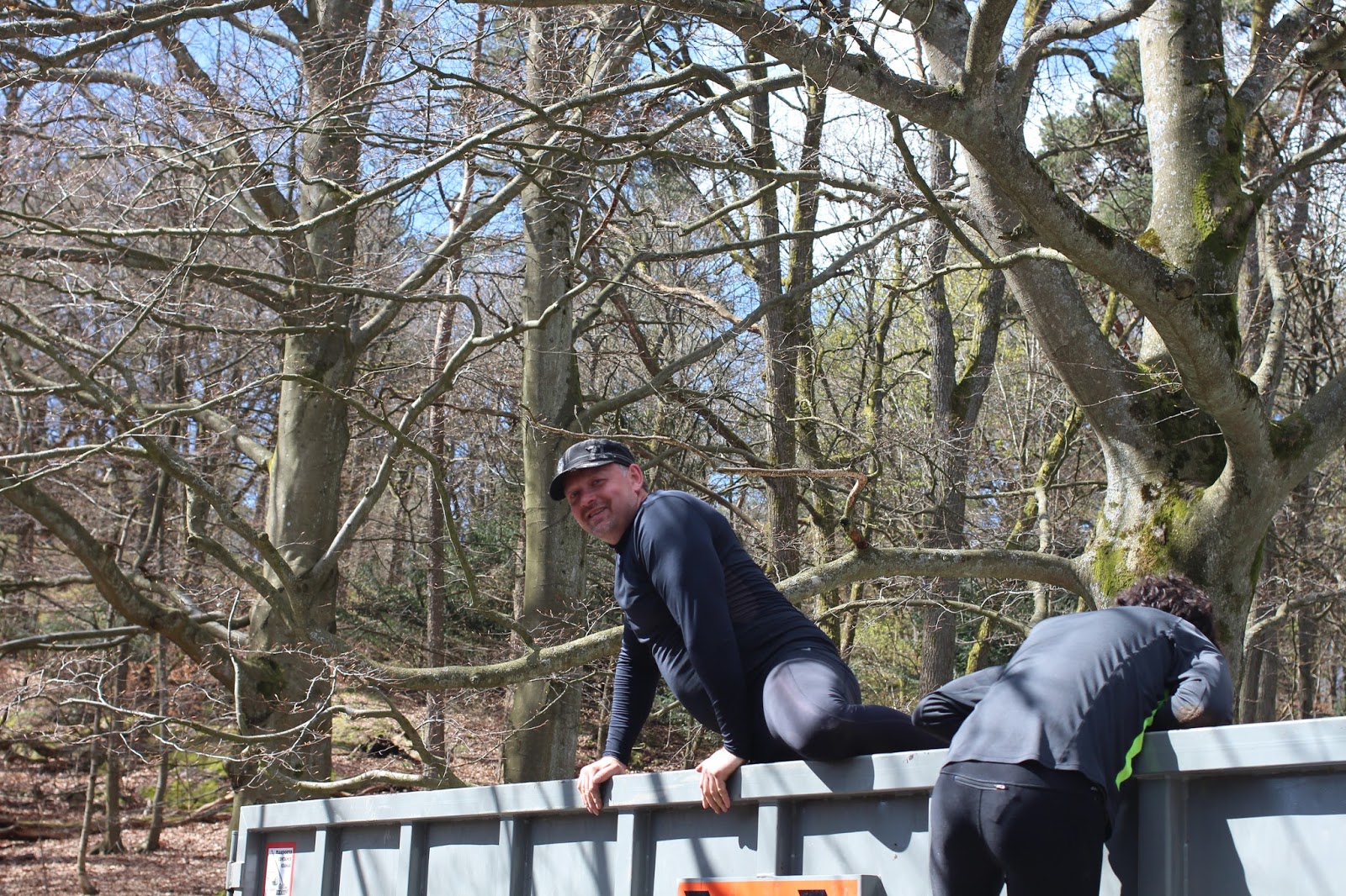 Det hade ju inte hunnit komma nån leverans av häckplantor, så i morse packade vi lite ved och åkte till Göteborg för att kolla när tre kompisar skulle springa Tough Viking i Slottsskogen. Vi ställde oss ungefär på mitten av banan med bilen, och gick runt och kikade på några, men inte alla, hinder – väldigt roligt faktiskt! Det var ju många starttider, så det kom folk hela tiden och sprang. Kul att se hur de olika lagen hjälpte varandra i, över och under hindren!