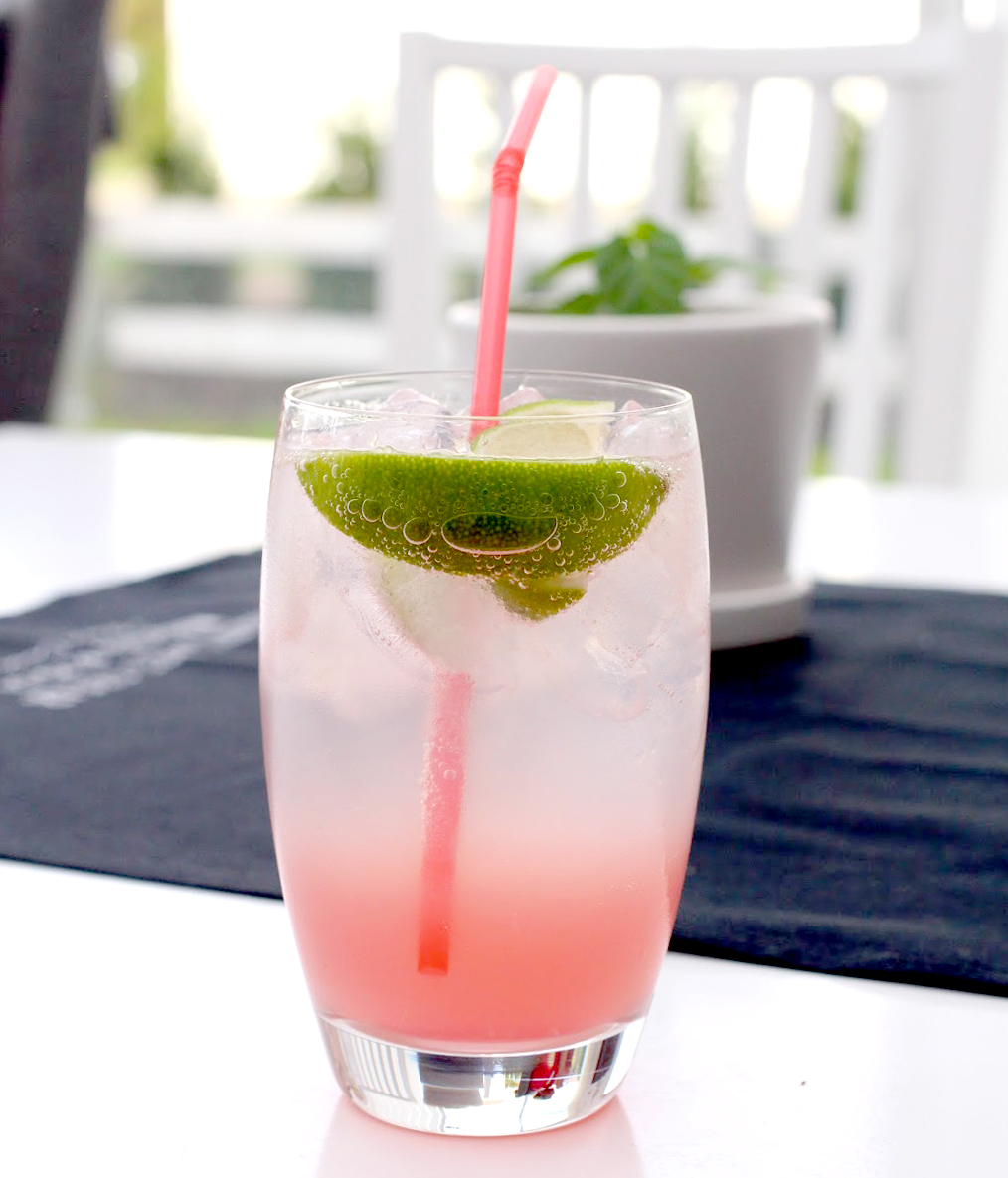 Häll upp i ett fint glas och toppa med sodavatten. Dekorera med lime och mynta, eller kanske en bit rabarber!