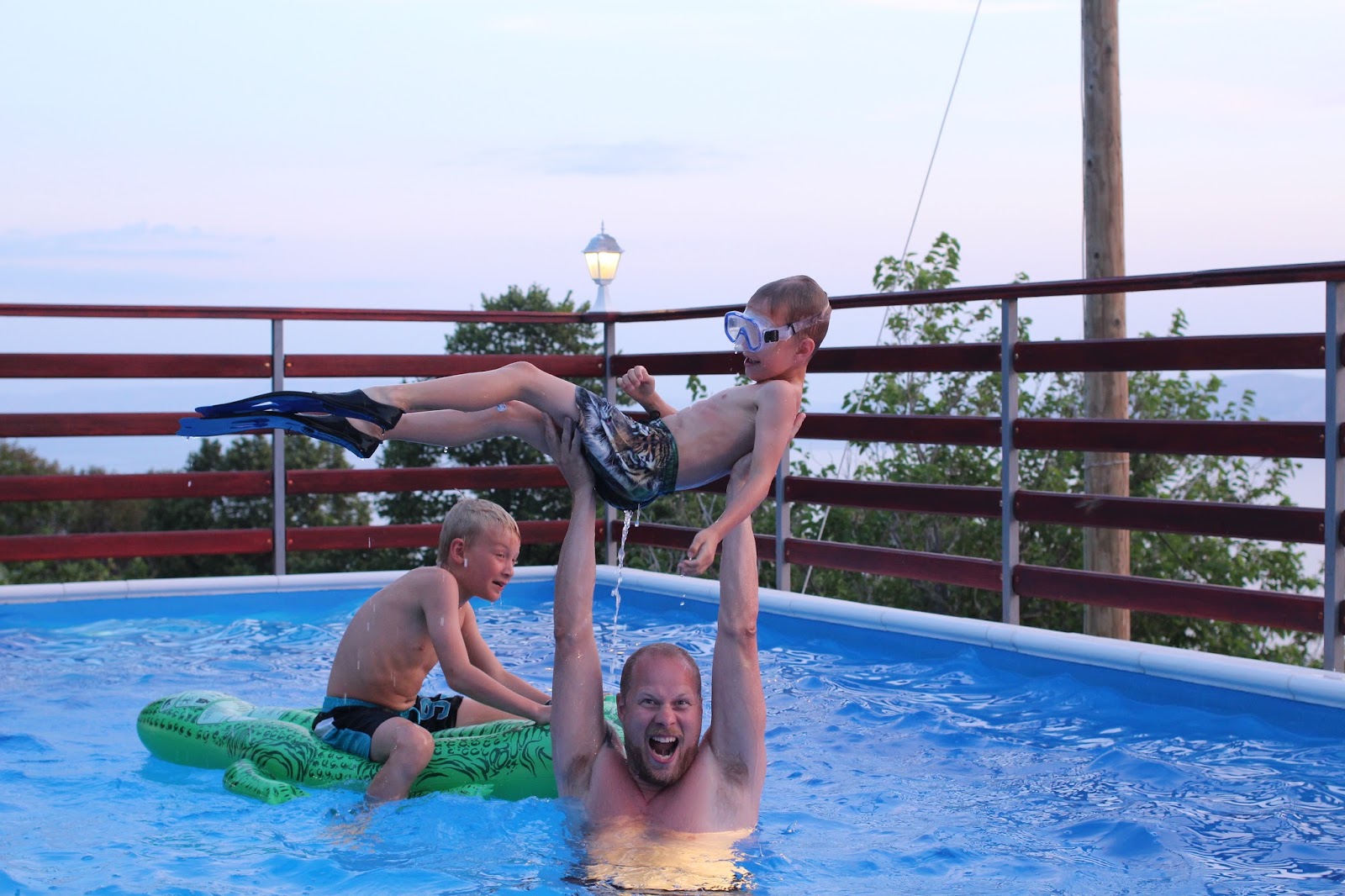 | Tur maken inte är lika känslig för ”kallt” (27 grader) vatten i poolen, barnen älskar när han busar! |