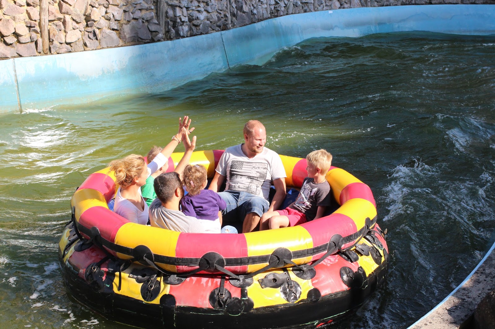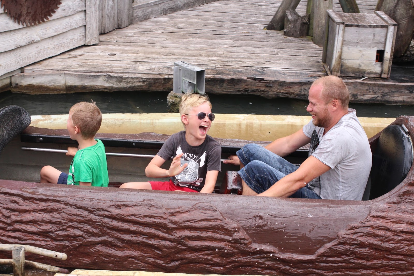 | Dagens roligaste, maken åker flumride med barnen efter att jag gjort det utan att bli så värst blöt. HAN blir dock dyblöt, vilket framförallt jag och Oliver har MYCKET roligt åt, som ni ser nedan! |
