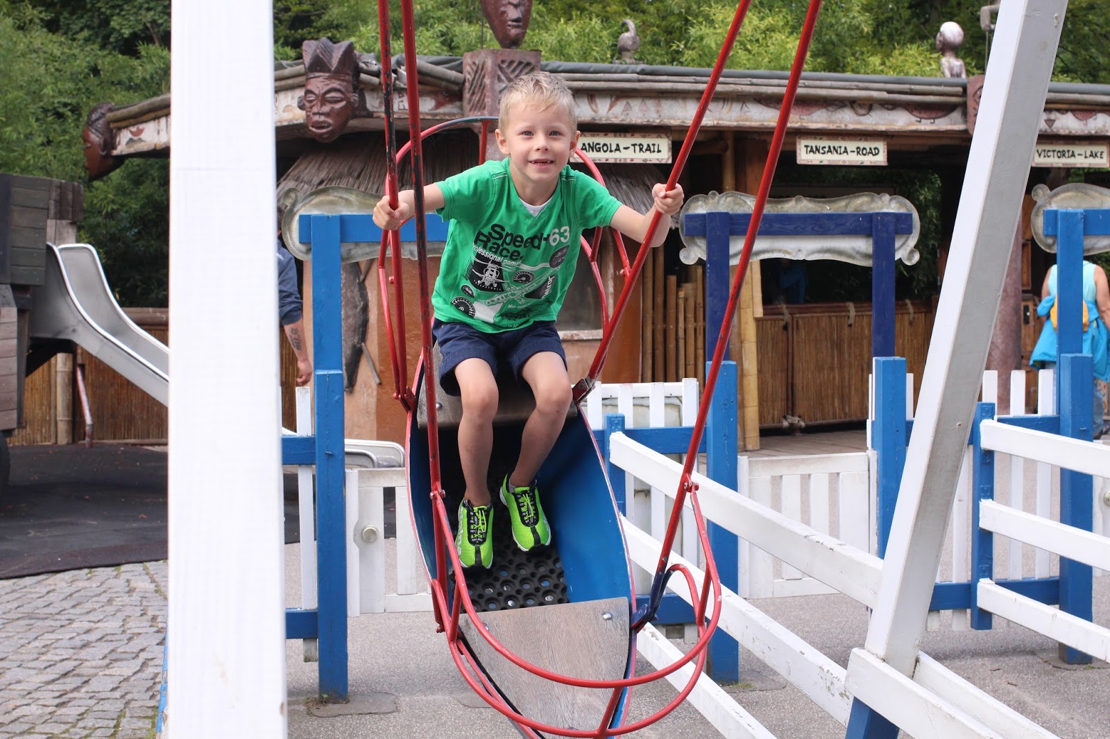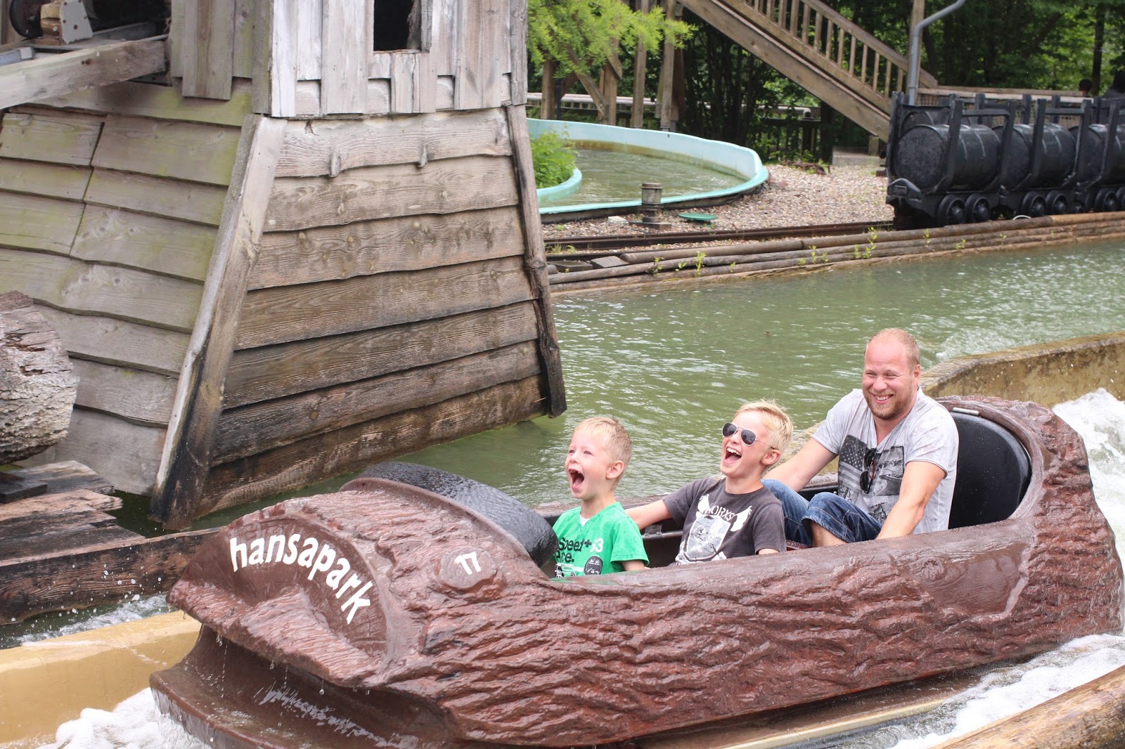 Dag 3, måndag. I dag spenderar vi en hel dag i Hansa-Park! Vi var lite oroliga för vädret, det slog om efter åskovädret igår och temperaturen gick från 29 grader till 20, men vi hade faktiskt otrolig tur och fick lite moln och sol om vartannat men inget regn. Det visar sig vara oerhört lite besökare idag, så köerna är nästan obefintliga 🙂 Oliver som nu är 140 cm får åka allt, och Lukas som är 120 cm får åka allt han vill (de större grejerna vill han ändå inte upp i än). Vi går från grej till grej och åker allt vi vill och orkar, hela dagen, och har så himla roligt!
