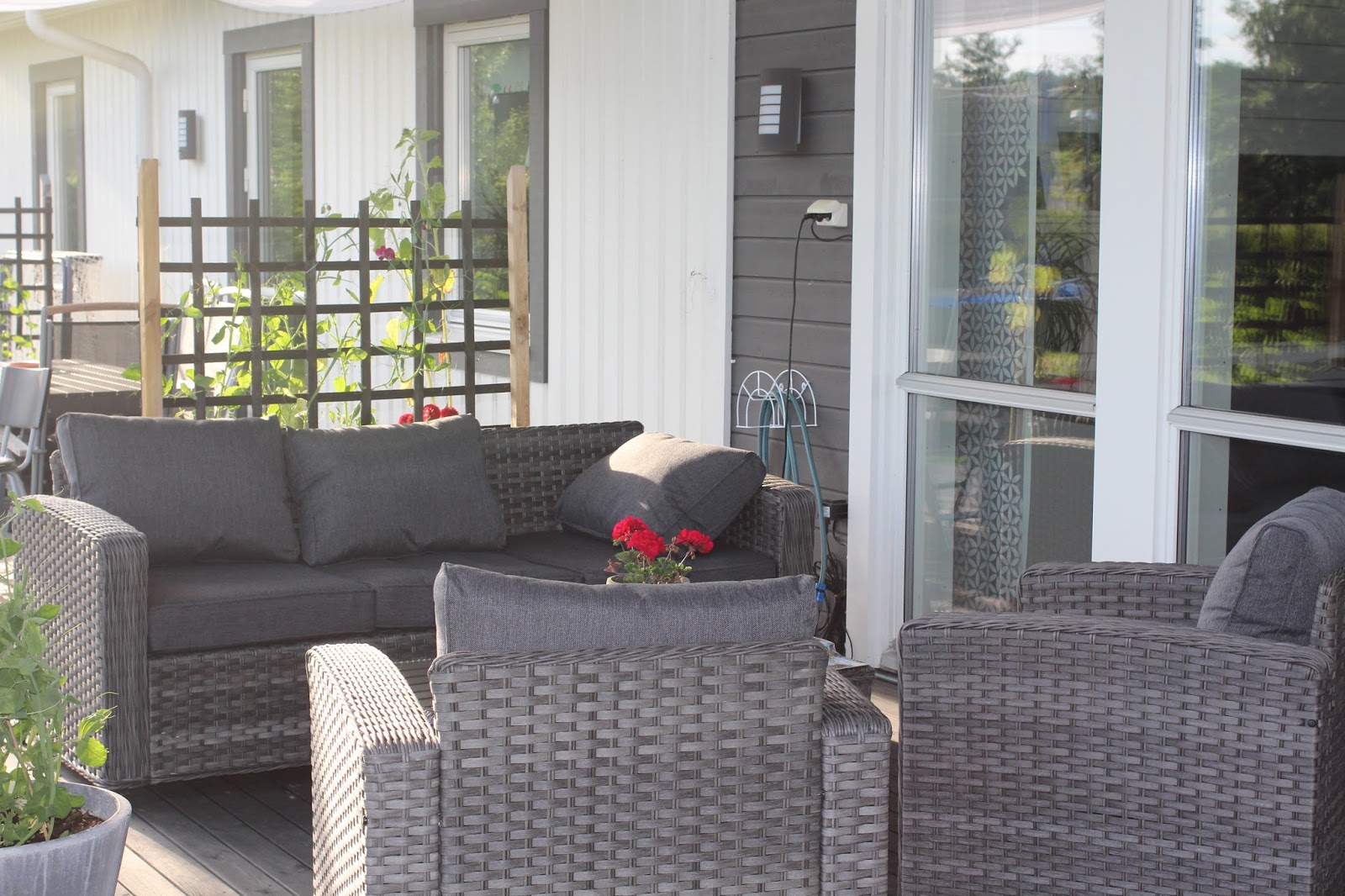 Whoop whoop, i och med att Jysk startade sin sommarrea på utemöbler så är vi nu färdiga med möbleringen av vår altan – och det blev faktiskt grymt bra!