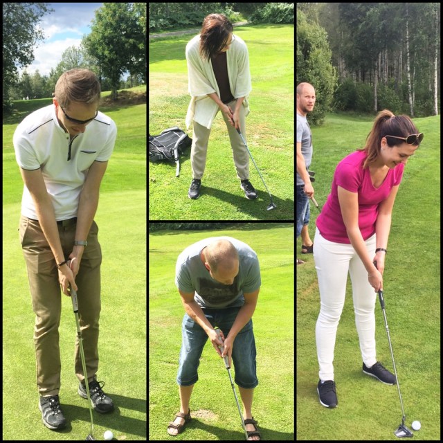 Haha, visst ja, jag har ju glömt att berätta att vi var på Pay’n’Play golf med bror och sambo i söndags! Alla hade spelat max 2 ggr innan, så vi hade väl ungefär samma förutsättningar – och det gör ju det hela mycket roligare… Det var mycket letande efter bollar i buskagen, och en del svordomar, men kanske framförallt mängder med skadeglada skratt 😉 Väldigt underhållande helt enkelt!