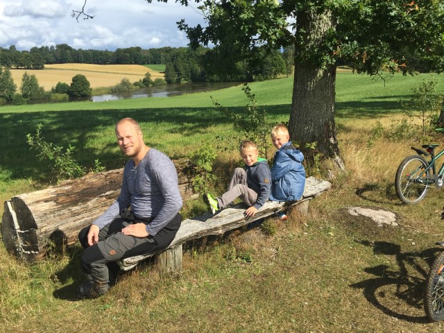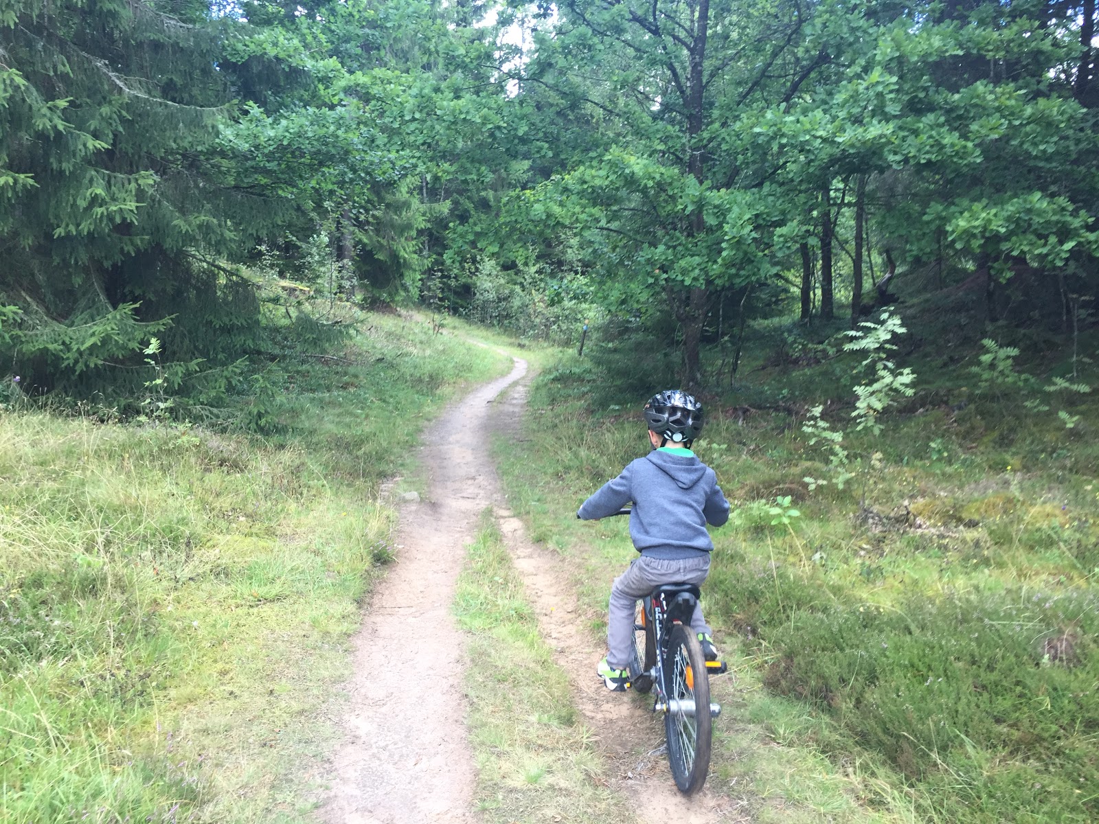 Idag kändes det lite likadant, men eftersom det skulle vara hyfsat väder för första gången på en vecka så kände vi ändå att vi ville komma ut lite, så barnen fick bestämma utflyktsmålet för dagen. Det blev ”den guppiga cykelbanan” på Hallby, följt av ett varv runt det (extremt kuperade) 6 km spåret där. Vi till fots och barnen på cykel – även om jag skulle vilja påstå att vi fick rätt mycket extraträning när vi skulle putta barn och cyklar upp för branta backar. Men skönt att ha fått röra på sig lite och dessutom varit ute i naturen lite!