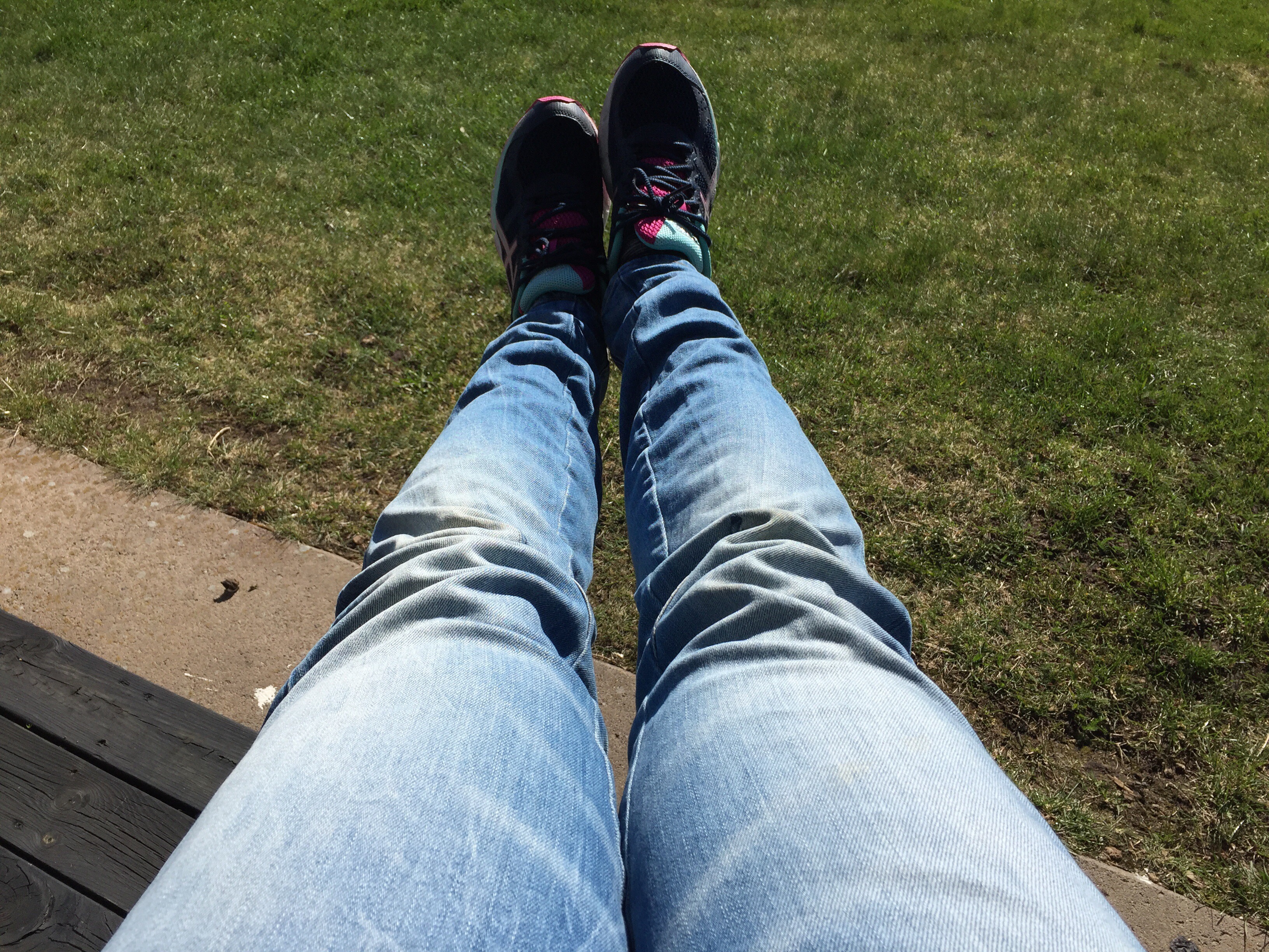 En bild från när jag testade mina baggyjeans och var jätteglad över att jag kunde ha dem, tills jag kom på att de satte sig rakt över snittet…