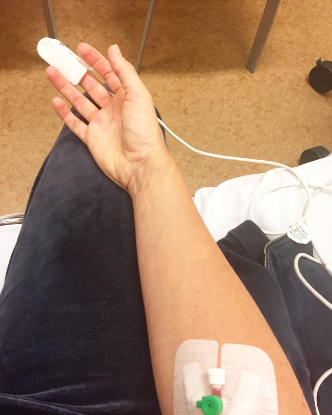 Åkte i alla fall in, tämligen motvilligt för det finns ju helt klart sexigare sätten att befinna sig på. Att sitta på akuten hela natten lockar inte direkt… Dock fick jag faktiskt komma in direkt, fick nål i armen utifall att och övervakas med blodtryck och syresättning i väntan på läkare, vi får väl se hur länge det dröjer. Har verkligen ingen aning om vad jag reagerat på, inte ätit nåt konstigt eller bytt tvål, schampo eller tvättmedel… Det stör mig mest, efter klådan, att inte veta vad det är!