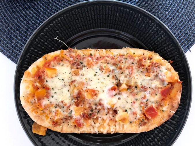 Som jag sa, ibland blir det frukost till lunch, eller kanske lite rester från gårdagen. Är jag på jobbet äter jag oftast lunch ute, då passar jag alltid på att ta fisk eftersom jag är dålig på att få in det till vardags hemma. Ibland tryter dock fantasin och då kan det bli som idag, när jag lekte student och åt en färdigpizza till lunch…
