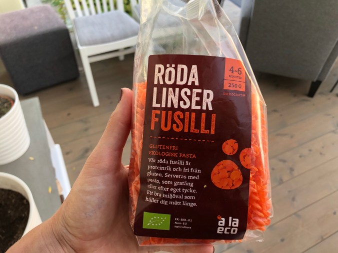 Jag har ett tips förresten, som jag börjat använda nyligen, det är linspasta! Vi har annars aldrig vanlig ”vit” pasta hemma eftersom jag får ont i magen av det, men med linspasta tror barnen att de äter vanlig pasta men får i sig en massa protein, sjukt bra snabbmat!