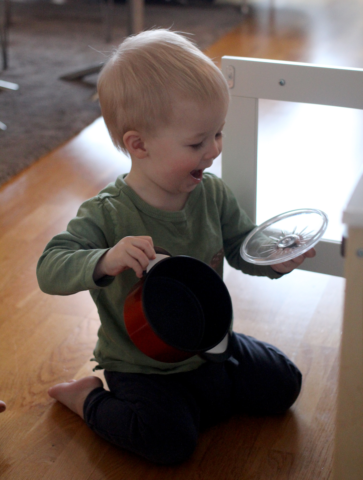 Men, det var ingen dålig jul ändå, på julaftons morgon kom Filip upp till sin stora julklapp – ett IKEA-kök som vi monterat kvällen innan. Det blev VÄLDIGT populärt och inte ens morgonvällingen fick komma mellan! Har bara en lite halvmörk och suddig bild, men glädjen syns ändå 🙂