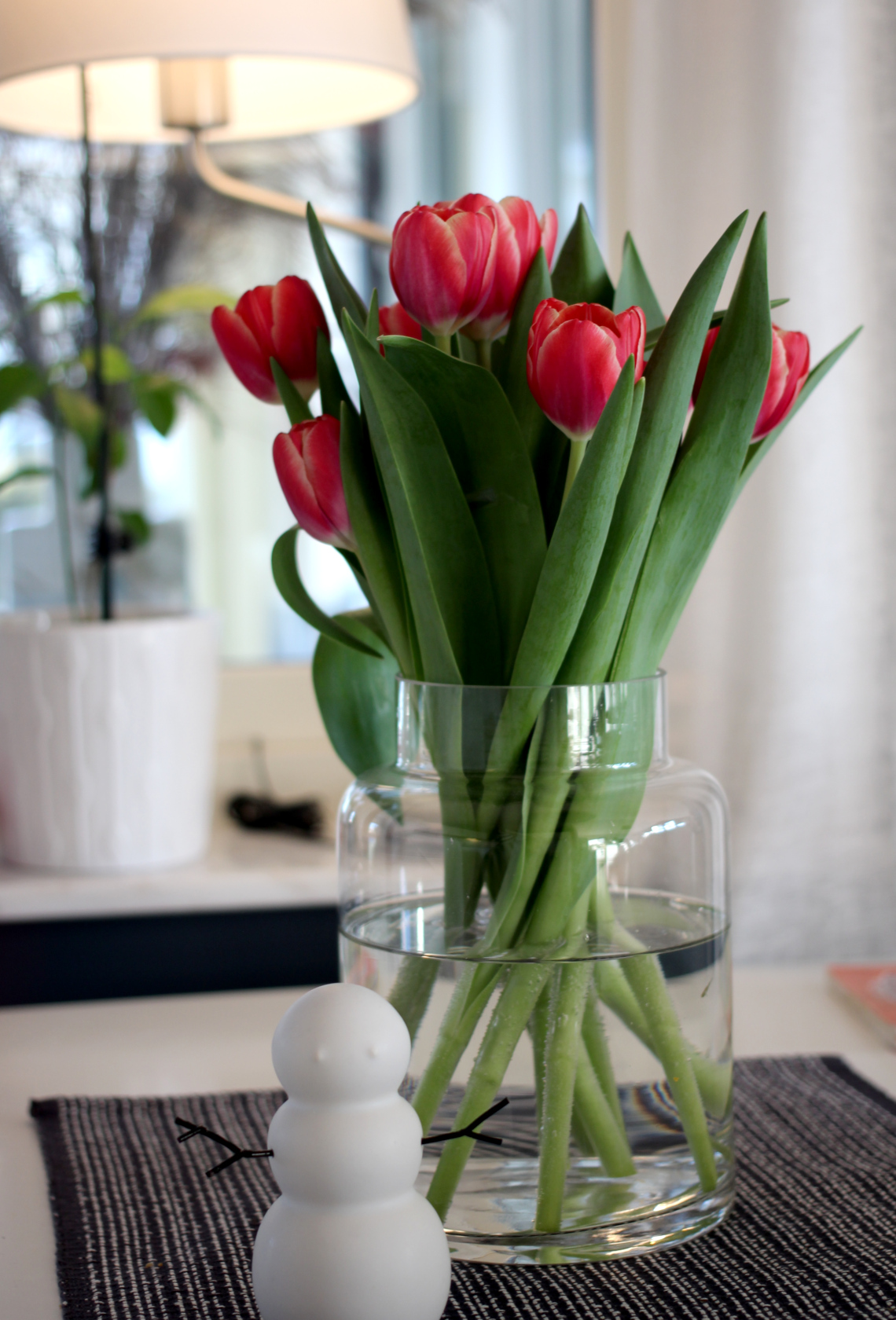 Jag försöker köpa en bukett tulpaner till varje helg med för att få lite känsla av att det någon gång kommer en vår, åtminstone jag blir glad av blommorna! För övrigt har vi monterat barnstol i vår andra-bil, så att jag ska kunna hämta på dagis (när vi nu sen vet hur vi ska göra med det). Orkar jag ska jag försöka ta och klippa Filip med, han börjar se halvt galen ut i sitt lilla rufs, men han är å andra sidan halvt omöjlig att klippa med…