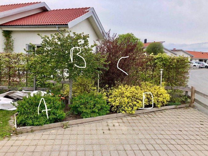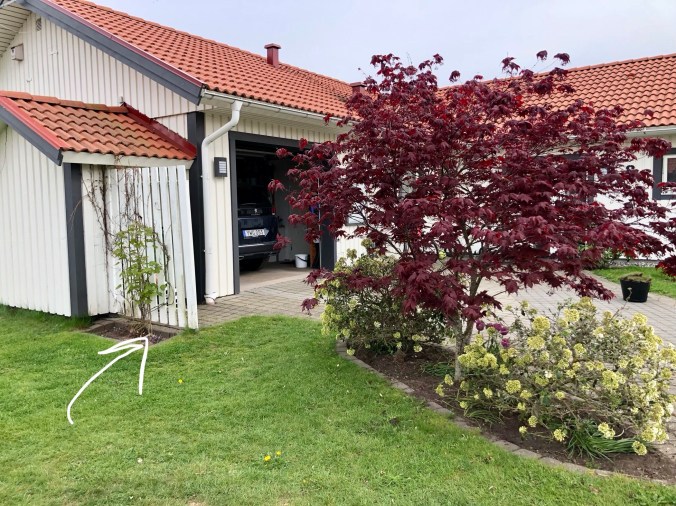 Vid vår garageinfart står en otroligt vacker blod-lönn som vi aldrig trodde skulle klara sig, men den frodas! Dock så pass mycket att buskarna under blivit ganska fula, så när de blommat klart ska de tas bort.