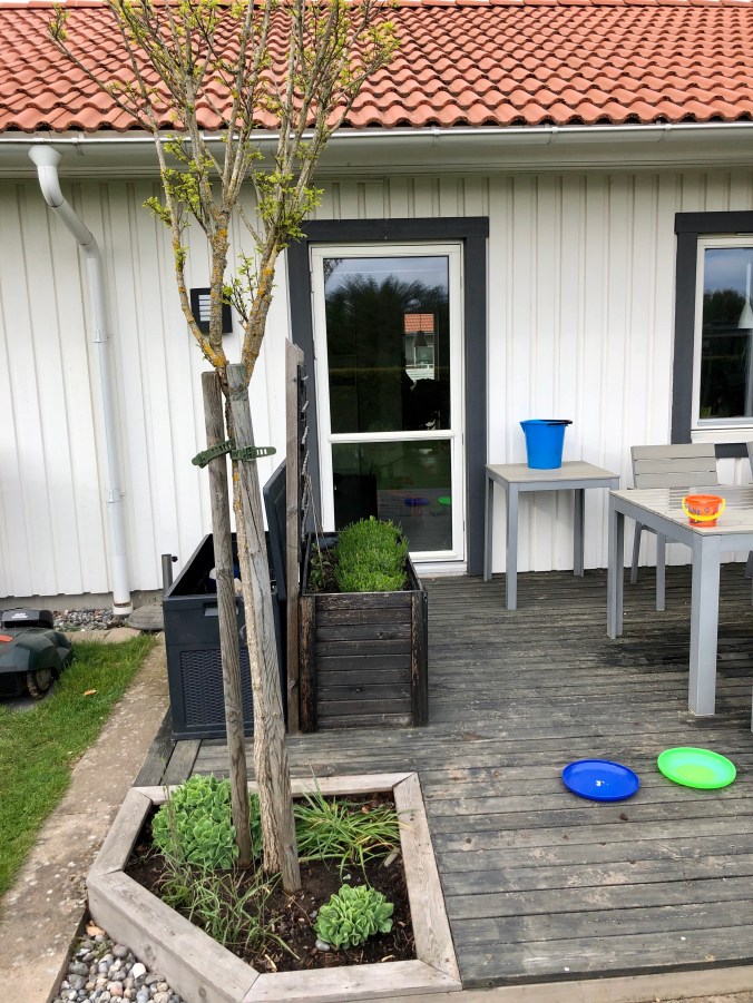 Filip och jag började med en sväng på Nyströms och plantagen i hopp om att hitta fläder-buskar, men det gick så där. Åkte till blomsterlandet sen och hittade två sorter, en klassisk och en röd sort (hette ). Sen har vi fyllt och planterat i några fler pallkragar och lite annat, här kommer en liten guide genom vår trädgård! Vill man se mer finns en film i min profil på Instagram (lindagladh).