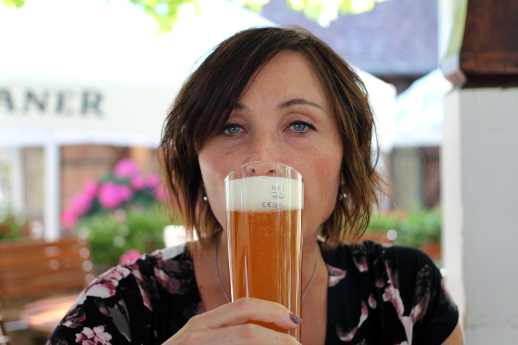 Den här kvällen käkade vi på en lokal restaurang och självklart blev beställningen ”Zwei Hefeweissen, Bitte”, alltså varsin iskall veteöl till mig och maken. Dricker hur gärna som helst vin, men just i sommarvärmen finns det nästan inget så oslagbart gott som öl!