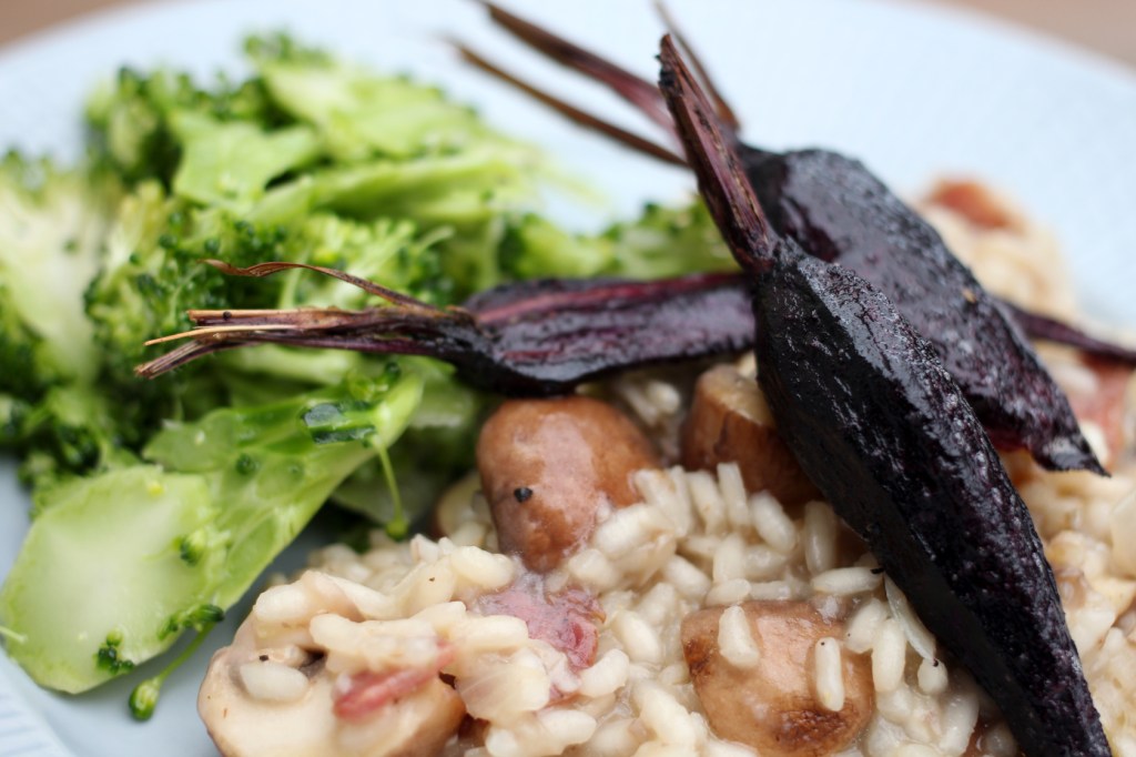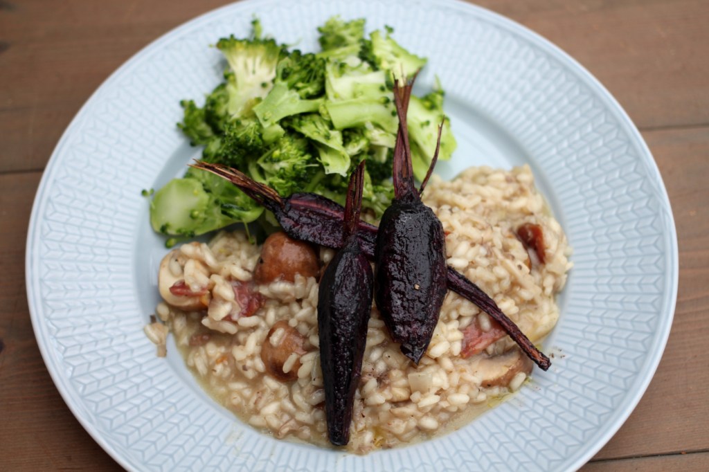 Vi serverade med ugnsrostade, egna morötter och en broccolisallad för lite syrlig friskhet. Så gott!