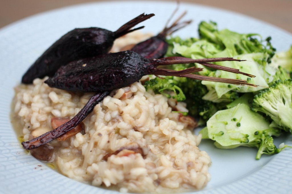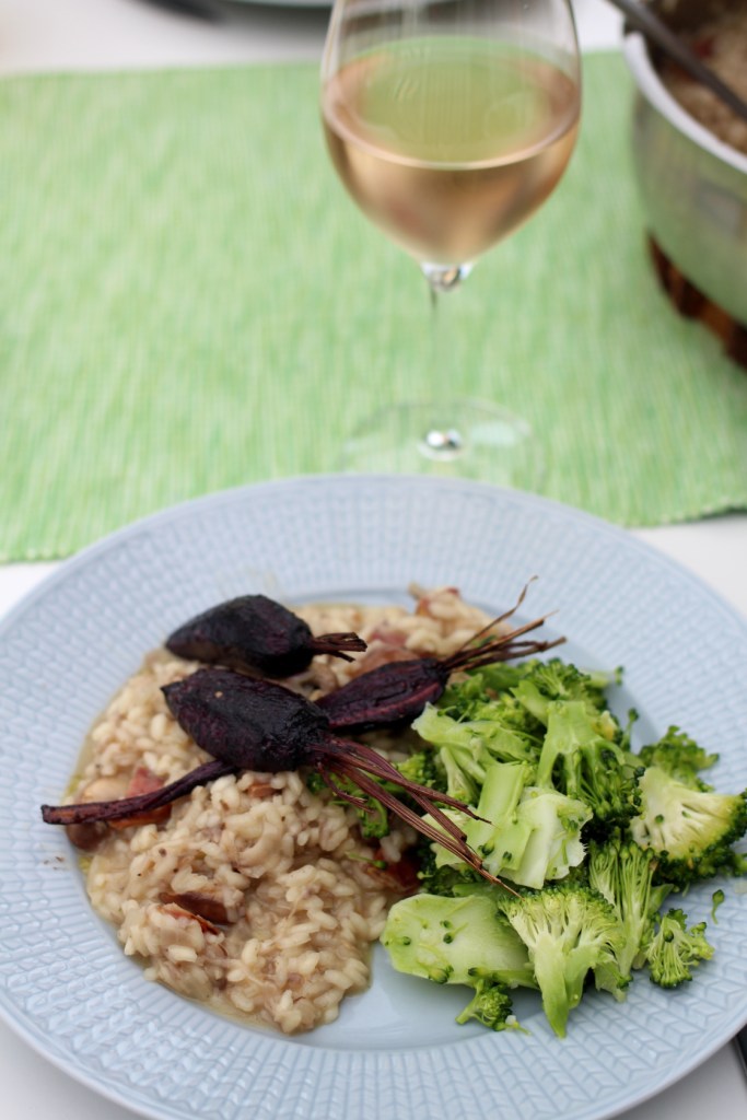 Att göra risotto är lite som att baka bullar – även fast man använder samma recept så blir resultatet i princip aldrig samma från gång till gång, eller från bagare till bagare. Men risotto blir ju ändå alltid GOTT och det är ett bra och enkelt sätt att göra en vegetarisk måltid på, om man nu inte vill addera kött. Den här gången blev risotton helt magisk, och jag ska försöka återge receptet så gott jag kan – men SMAKA er fram!