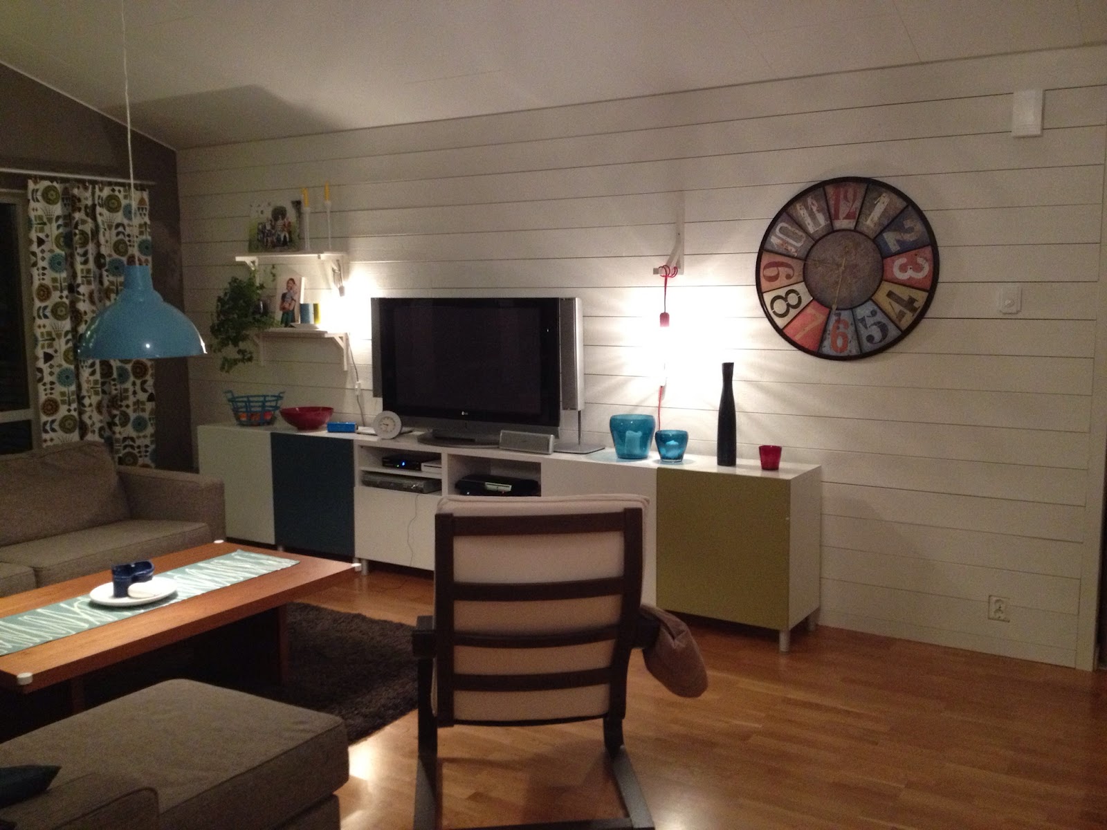 Ah, här har vi precis satt upp vår plankvägg och gjort om i vardagsrummet, ganska tidstypiskt för tidig höst skulle jag vilja säga, blir alltid vansinnigt sugen på att inreda om lite då. Har till och med börjat få med lite bilder till bloggen: