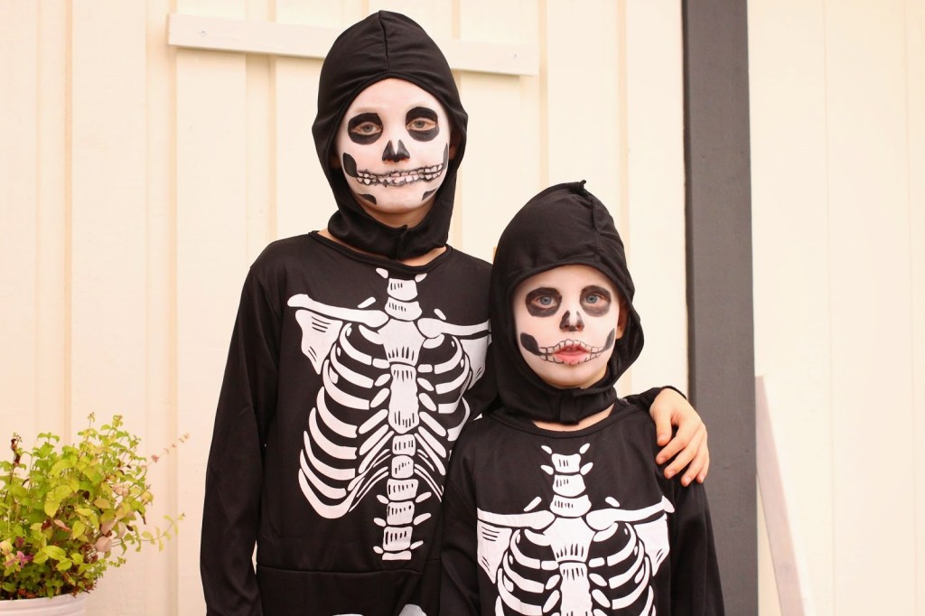 Det blir ingen direkt halloweenfest utan mest lite pizza och film, det är ändå väldigt mycket enklare med de stora grabbarna nu, inte en massa lekar som ska planeras och så utan det funkar bra med bara lite lösa ramar att hänga runt. Fast jag måste ju ändå säga att det var lite roligare när man fick sminka dem förr, nu ska de bara ha nån spökdräkt och mask…