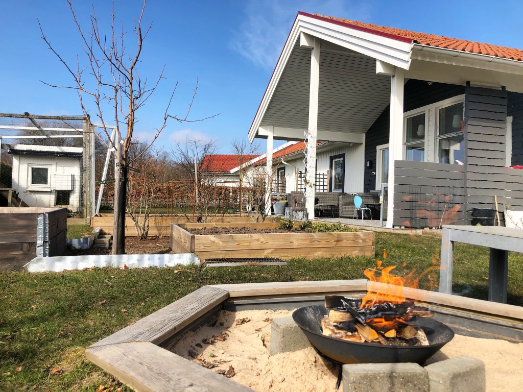I går var en bra dag. Vi var ute mest hela dagen, maken byggde kanter till nya trädgårdslandet och jag vände jord och planterade lök. Vi grillade i det fina vädret och tog fram studsmattan som vi köpte nytt när och kantskydd till. Bra på alla sätt och vis.