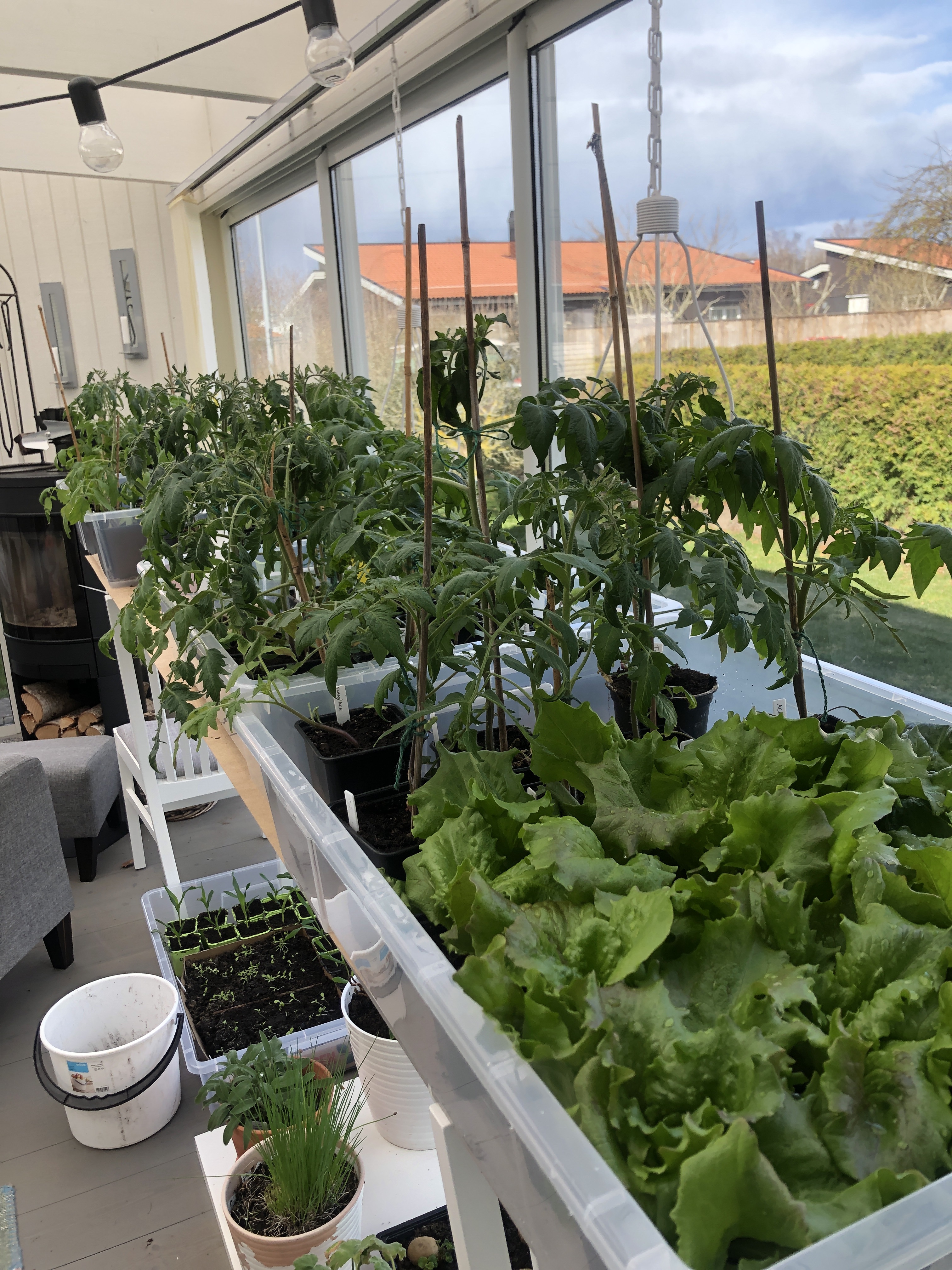 Bland det bästa varje dag är ändå att komma hem och inspektera grödorna som är på g, jag hoppas jag får jorden jag beställt denna veckan så jag får ner potatisen, det börjar bli akut… Hoppas snart kunna flytta ur tex kål och sånt med, annars har jag ingen plats över i vårt uterum snart…
