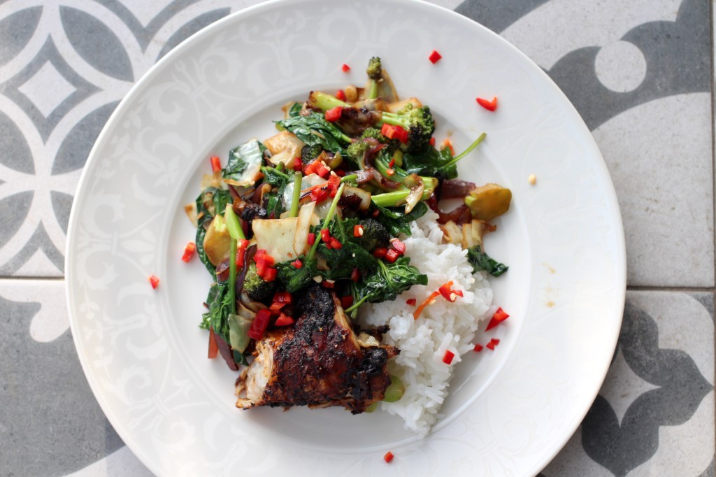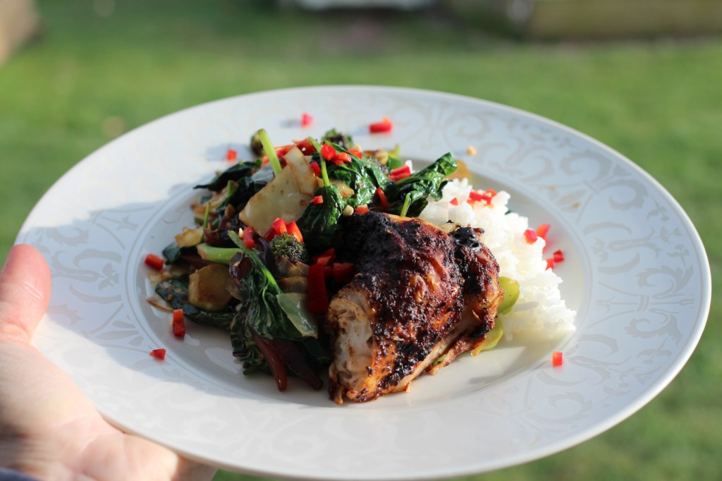 Efter en helg som nästan uteslutande spenderats med fix och trix i trädgården så var det dags att fixa lite middag till familjen. Stod och hackade grönsaker och funderade på hur sjutton jag skulle göra för att steka allt smidigt, när jag kom på att jag HAR ju en stor stekhäll – muurikkan! Det blev så sjukt gott, så här kommer receptet (går även steka i stekpanna, wokpanna eller i långpanna, men riktigt lika gott blir det inte… Nu var jag sugen på asiatiskt idag, men det går ju smaksätta med tex grillolja för en mer ”vanlig” smaksättning om man är lagd åt det hållet.