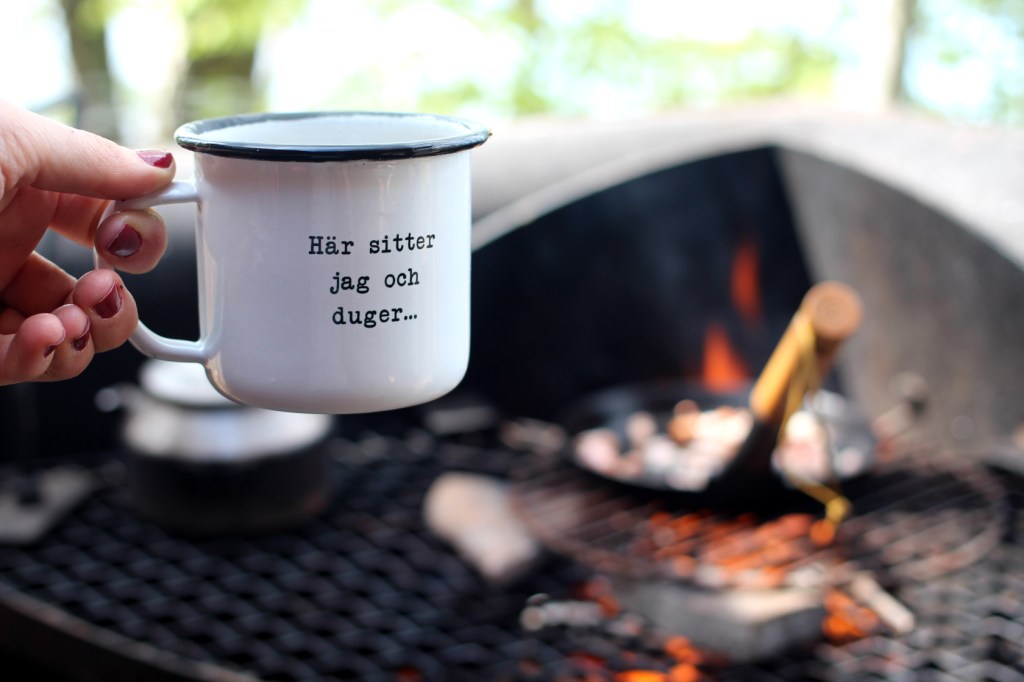 Jag invigde min fina emaljerade kaffekopp utomhus, ihop med eget, nymalt kokkaffe.
