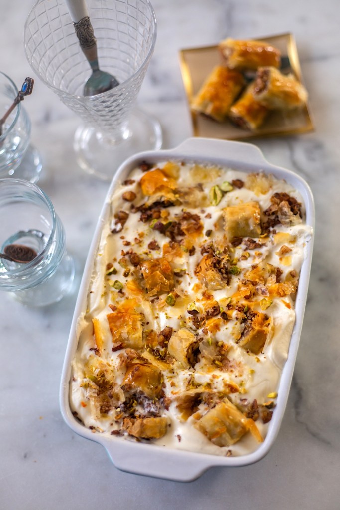… Desserter från öst, eller vad man ska titulera det som. Godingar som baklava eller milda puddingar med rosenvatten och pistagenötter. Det är nåt med den typen av liksom milda men tröstande smaker som jag verkligen älskar, och ändå aldrig orkat göra själv pga lite udda ingredienser eller många moment.