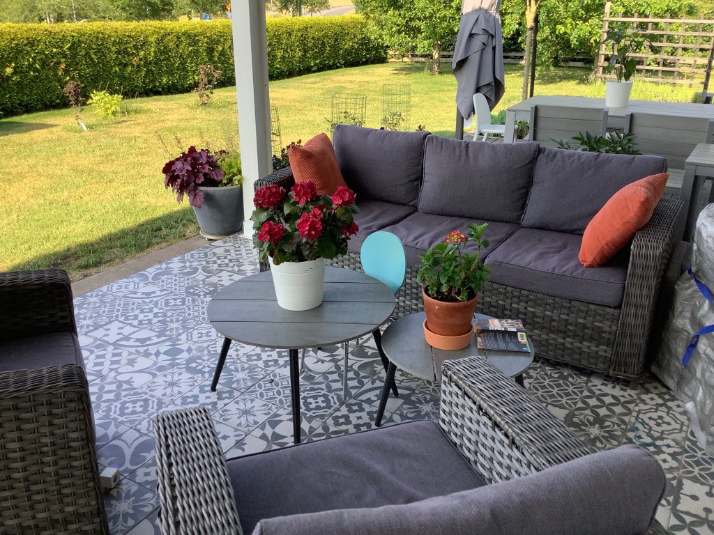 Filip mår nu helt ok efter lite Ipren, och sitter nu och kollar Bamse. Själv har jag lyxmat till det med att sätta mig på min absoluta favoritplats för frukost på sommaren, nämligen i soffan här:
