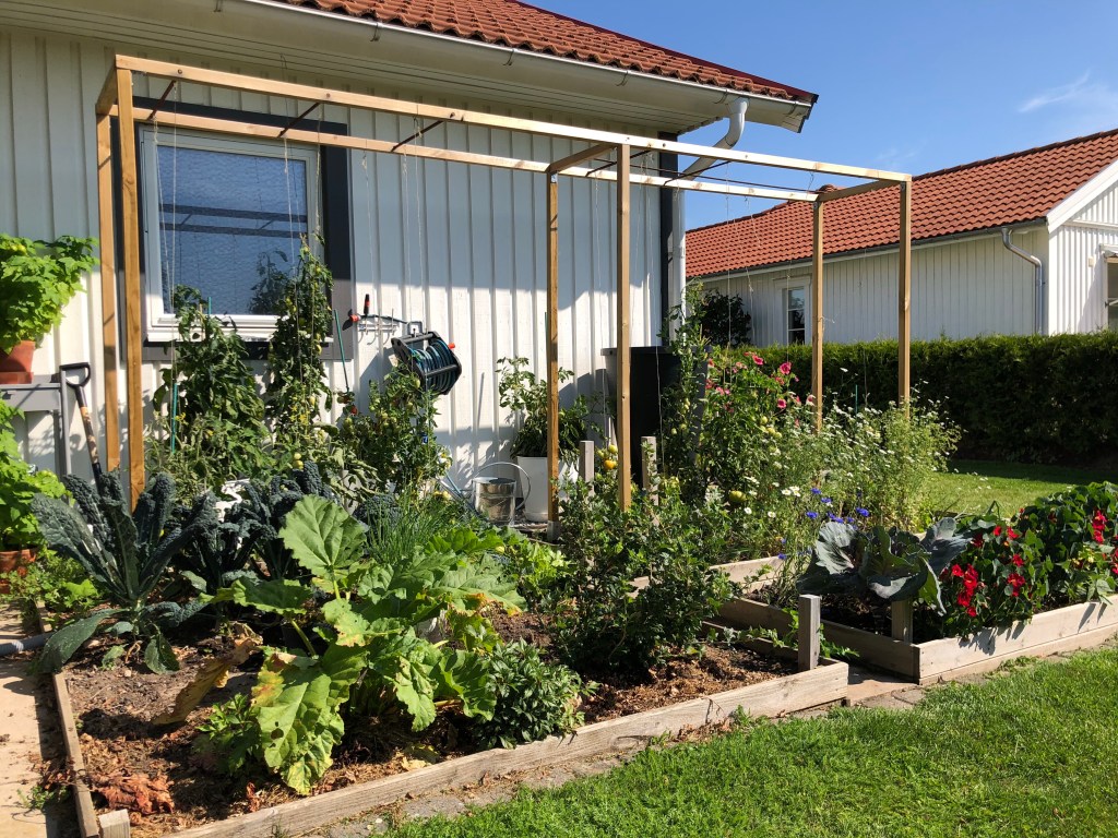Varje dag när jag kommer hem (från jobb eller utflykter) så börjar jag med att gå ett litet varv i trädgården. Plockar in gurkor och vaxbönor, äter blåbär, smultron, vinbär och björnbär, rycker nåt ogräs och vattnar. Men shit vad det har hänt mycket bara de här få dagarna med värme, det känns som nästan allt som släpat efter i kylan har tagit ett jättekliv framåt! Väldigt kul att se, speciellt som det verkar bli fortsatt fint väder åtminstone en vecka framåt.