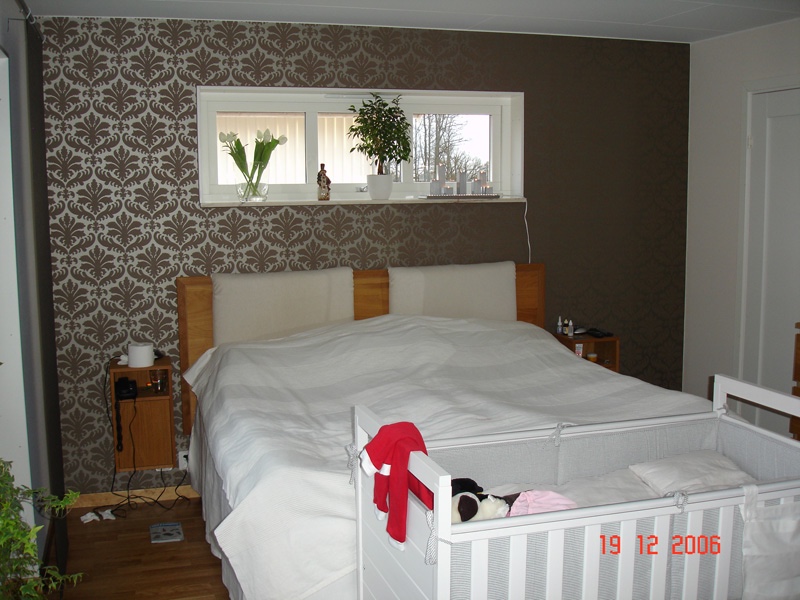 Här är en av mina personliga favoriter i sovrummet, tapetserade den när maken var på konferens en helg.