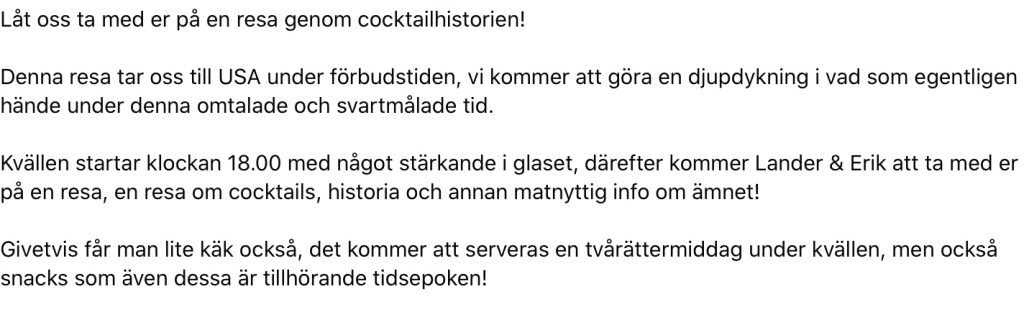 Något jag däremot verkligen ser fram emot är något jag inte ens berättat om, lite av rädsla för att något ska komma emellan som gör att vi inte kan gå. Det är Yonder – systerbolaget till El Duderino kan man väl säga – som anordnar ett event nästa vecka vid namn ”Historiedrickarna”. Lite kort info på deras sida säger så här: