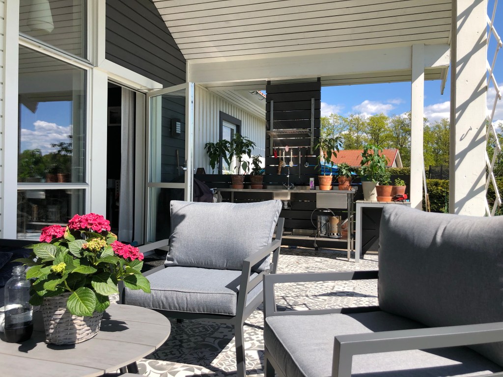 Men men, vi höll oss på hemmaplan i helgen vilket är superhärligt det med när vi nu hade så fantastiskt väder! Maken hade sett till att jag blev extremt uppvaktad med både present, smörgåstårta och en superfin jordgubbsmoussetårta (hemgjorda), O hade köpt en fin chokladkaka och L hade varit med och valt blommor. Vi njöt av värmen, grejade lite smått i trädgården och var mest mätta och solvarma hela dagen. Superskönt!