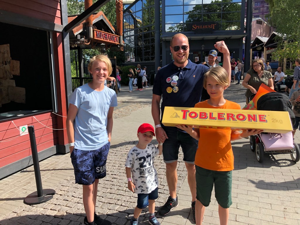 Det åts glass, churros, korv, sockervadd och pasta – alla fick så de var nöjda och glada. Tydligen är det så här man poserar för ett foto förresten, enligt Filip.