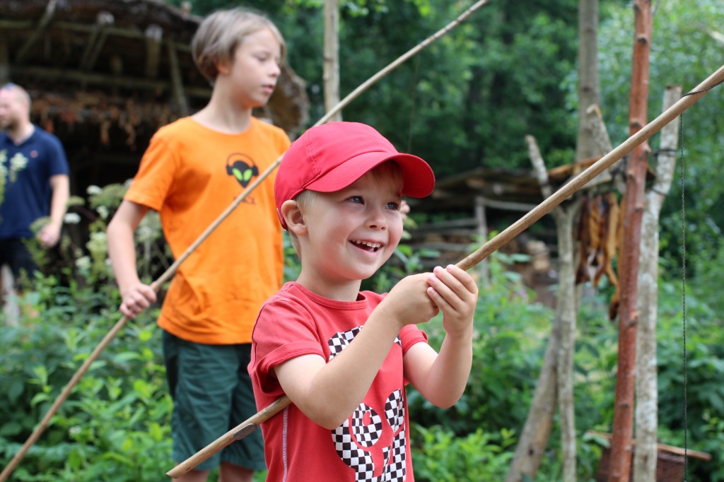 Jag blev väl lite…besviken, kanske. Det var ju jättelitet, och inte så väldigt mycket aktiviteter, förutom myggaktiviteter eftersom hela ”byn” låg runt ett litet träsk. Hade nog sett nåt lite större framför mig? Men barnen var väldigt nöjda, de fick bland annat skjuta med pil och båge: