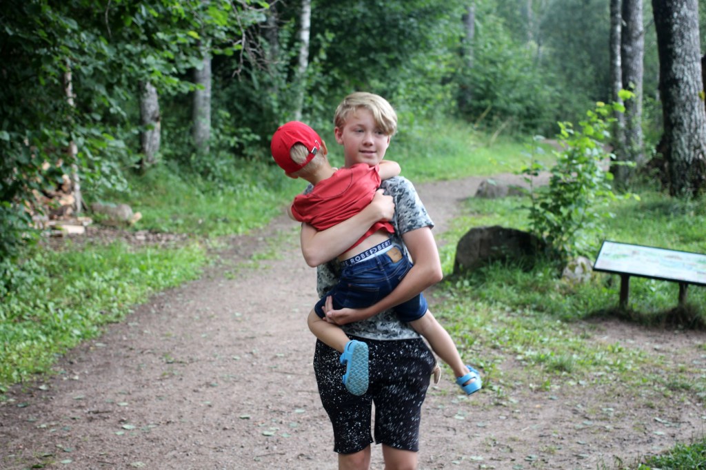 Jag hade ju med Ekehagens forntidsby på listan över saker vi ville göra på semestern, eftersom framförallt Lukas gärna ville dit. De har ju varit där med skolan (Oliver också, för länge sedan) och då fick de göra en massa olika saker, spjut, baka bröd, göra nån soppa och lite annat, så han ville gärna tillbaka. Tänkte att det blir ju kanon, bra med utflykt där vi kunde ta med Nala med.