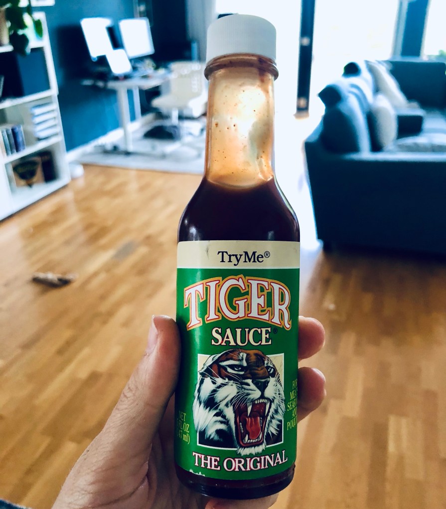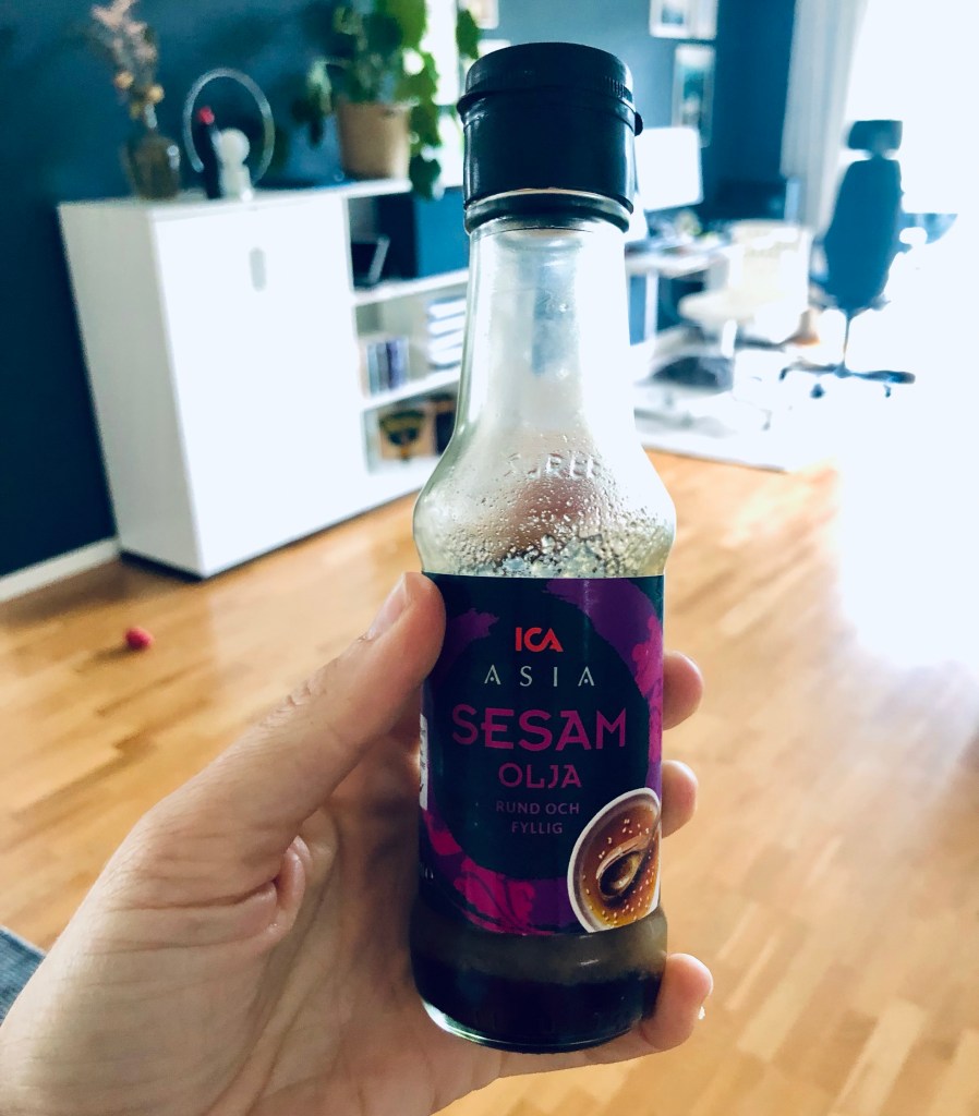 ÄLSKAR sesamolja, ihop med japans sojasås, vitlök, lime och ingefära så gör verkligen sesamolja att det blir den där underbara umamirika asiatiska smakbilden! Köper inget särskilt märke här, det blir vad som råkar finnas i den affär jag handlar i, tycker de flesta är bra?En riktig favorit för min egen del, och även mellangrabben gillar den. Vill liksom bara VRÄKA på även om det blir sådär starkt att man inte kan andas efter, tror det är just den höga syran i den som gör att jag verkligen inte kan låta bli. Har den nästan alltid på och till kyckling (kycklingvingar, mums) och ganska ofta istället för tex sweet chili när jag tycker den blir för söt och för lite tryck i. De här dök upp i hyllorna för bara nåt år sen tror jag, och de ar fantastiska BBQ-såser! Den här lite starkare (som ju till och med är slut) tar vi på de ”vuxna” sakerna på grillen, tex spareribs, men vi har även deras vanliga BBQ-sås som barnen får på sitt. En stor eloge till att det inte är en massa skit i med! (Ja jo, socker, men inte 328 E-ämnen och så)Också en relativt ny favorit, går att ha på typ allt? Gott på sushi-bowl, ris, sallader och tja, typ allt. Tänk som en sriracha-majo, fast godare tycker jag. Nä men jag klämmer in en liten sås här med, den här lilla rackaren höjer det mesta, med mycket smak av tryffel. Sjukt god att ha istället för hamburgerdressing i sin hamburgare, eller bara att doppa nypotatis i…. Mmm..Avslutar med en sås av det söta slaget. Den här är inte så ofta vi har hemma (PS, Maple Joe är godare) pga den tar slut på typ en dag om ungarna får syn på den, men ibland när man vill lyxa till pannkakorna så slinker den ner. Typ den godast sötman jag vet!