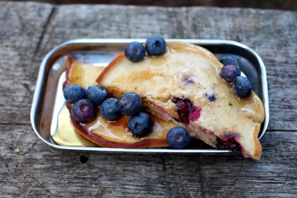 I helgen var vi ju på utflykt, och eftersom våra blåbärsbuskar just nu är fulla av stooora amerikanska blåbär så plockade jag en skål och gjorde en variant på krabbelurer. Det går ju såklart även ösa i nyplockade blåbär direkt på plats, då kan du plocka dem i skogen! Blåbär och pannkakor har ju sin smakkompis lönnsirap (en favorit, men det vet ni ju), så istället för att vända krabbelurerna i kanelsocker ringlade vi på lite sirap. Alltså det kan vara något av det godaste vi ätit, men det säger jag ju i och för sig ofta om sånt vi äter utomhus…