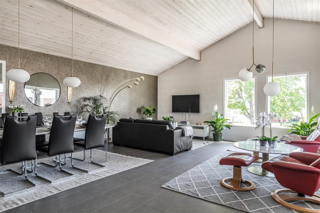Innan vi flyttade så hade vi ett jättestort vardagsrum. Nu har vi ett ENORMT vardagsrum? Men som jag sagt innan så ser det här huset pyttelitet ut utifrån, men är väldigt mycket större invändigt! Dessvärre orkar jag inte pallra mig ner till garaget och leta fram och byta till ett bättre objektiv på kameran, så jag har lite svårt att få med rymden på mina bilder. Tänker att ni får lite förebilder både från min mobil och från visningen, så kanske det ändå framkommer lite.