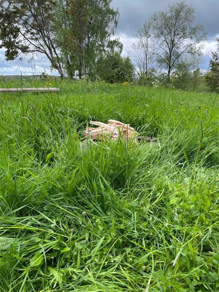 Förutom slingorna till gräsklipparen så är det mesta jobbet rätt roligt. Har aldrig kört ”stor” trimmer/röjsåg men det var ju kul! Var däremot inte beredd på hur fruktansvärt skitig man skulle bli, så skulle inte tagit min stickade tröja, hahaha… Hade gräsklipp ända ner i BH’n när jag var klar, och då har jag bara klippt kanske 1/10 av det som ska röjas. När det gäller beteshagarna så början jag nu förstå att de inte kommer kunna stå ”oanvända”, det växer så galet fort, och det vore grymt dumt om de växte igen helt. Jag hoppas hästarna räcker just nu, men vi behöver se över alternativ till nästa år.