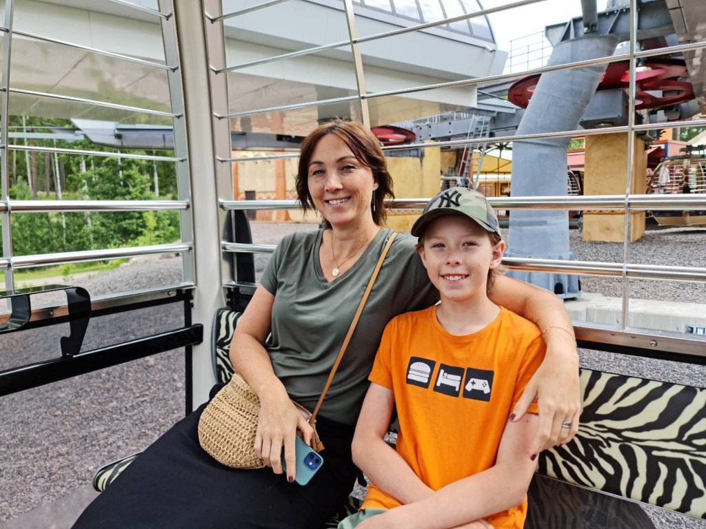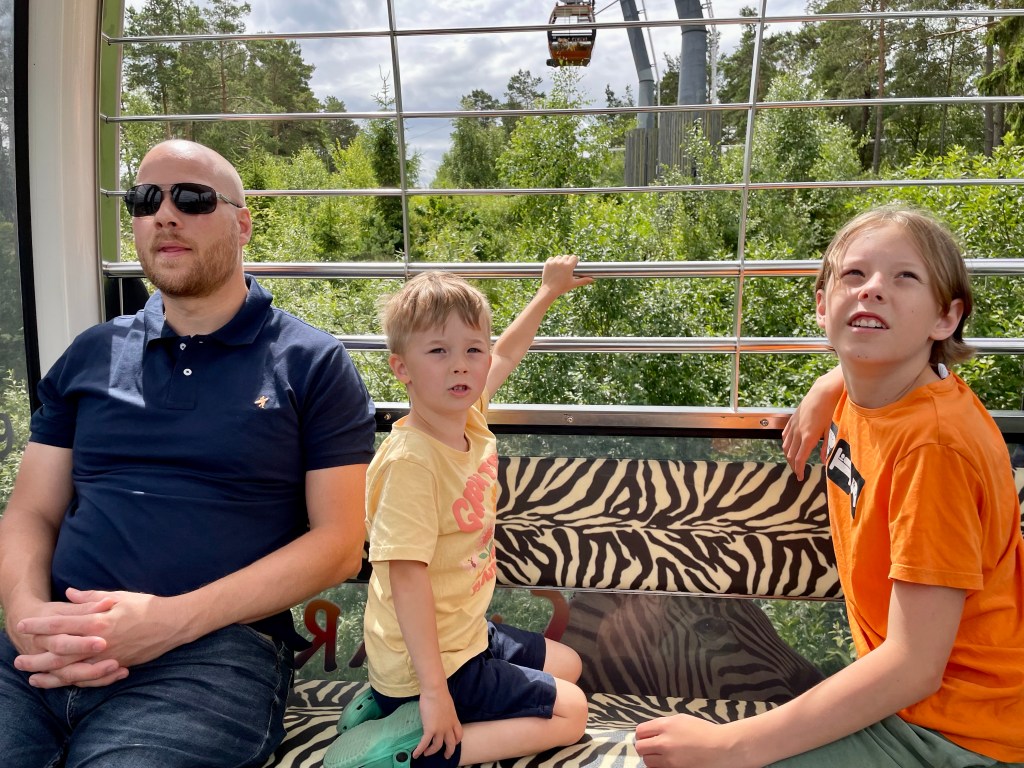 Vi började med att åka safarituren i gondoler, liiiite jobbigt när man är lite höjdrädd tyckte tant… Men väldigt coolt att åka bland girafferna! Världens jurassic park-känsla med, vi kunde alla lätt se framför oss hur en T-Rex dök upp bredvid vagnen!