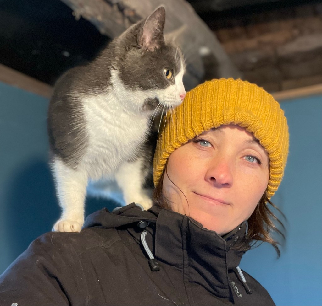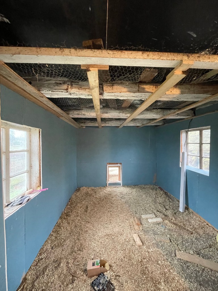 Äntligen börjar förkylningen lätta och efter vad som känns som en evighet inomhus så släpade vi oss ut för att regla klart taket i hönshuset idag – förhoppningsvis kan vi åka och köpa det gips som saknades nästa helg och få det klart (ja förutom målning och fogning då). Självklart hade vi sällskap av Stina hela tiden!