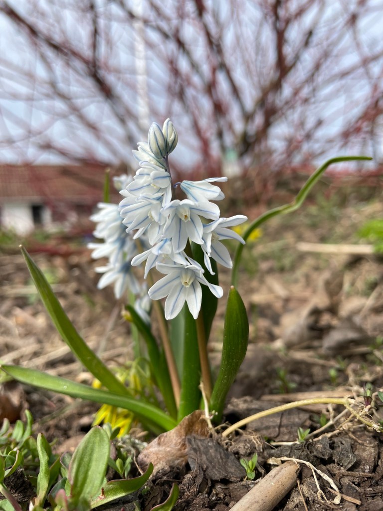 Tittar man nära i naturen nu så är det verkligen i startgroparna överallt. Knoppar sväller och det börjar spira grönt under fjolårsgräset. Hela gräsmattan är full med blå och gul scilla, och vi har sett både bin, humlor och fjärilar!