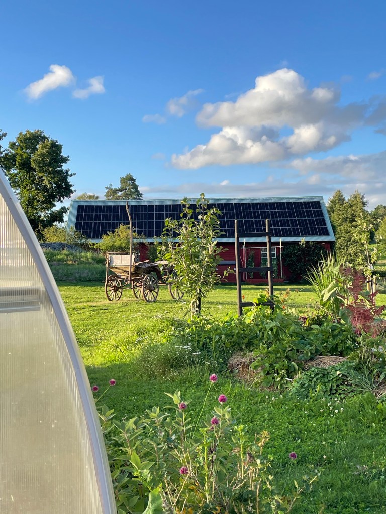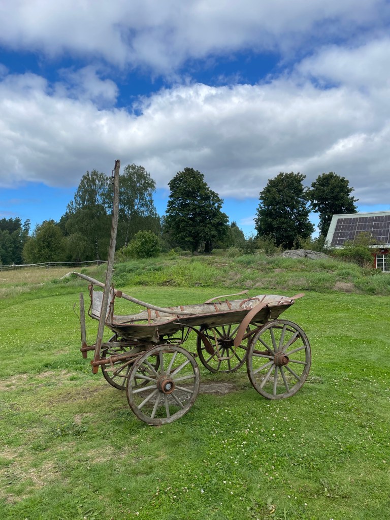 På gården fick vi ägna en stund åt att reparera vår grusade infart som liksom runnit iväg – den skulle egentligen behöva justeras och grusas likt resten av våra grusytor, men det är ett projekt för något annat år (och någon annan budget). Jag har däremot glatts åt en superfin gammal hästkärra vi fick av våra grannar, kolla bara!